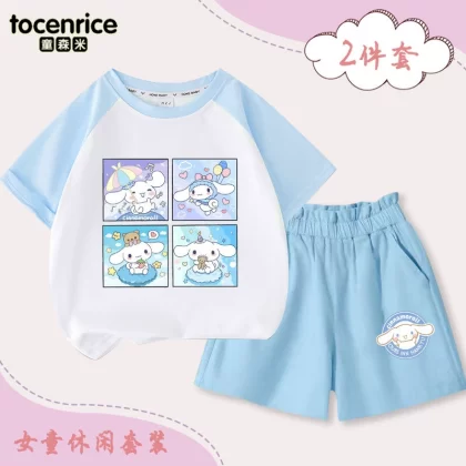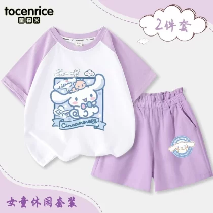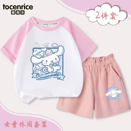 | nameOriginal | Jade Dog Girls Short Sleeve T-Shirt Set 2024 New Summer Medium and Big Children's Raglan Top Shorts Two-piece Set Trendy 7 |