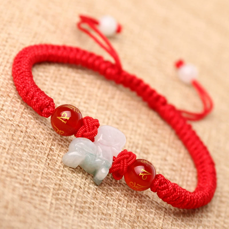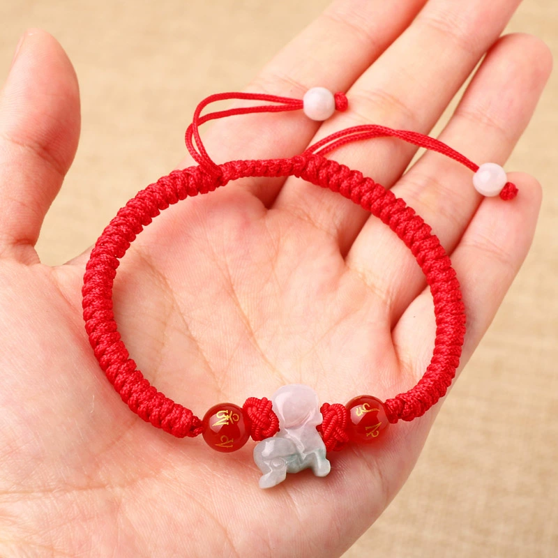 Jade jade zodiac hand-woven red rope bracelet worn by people with the zodiac sign of Dog in 2024 Gengzi Year