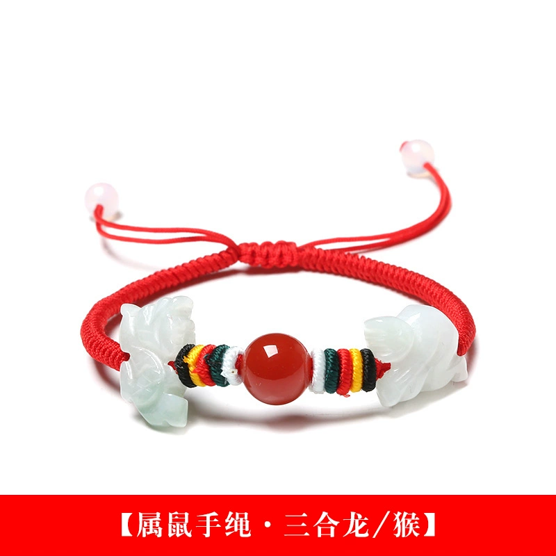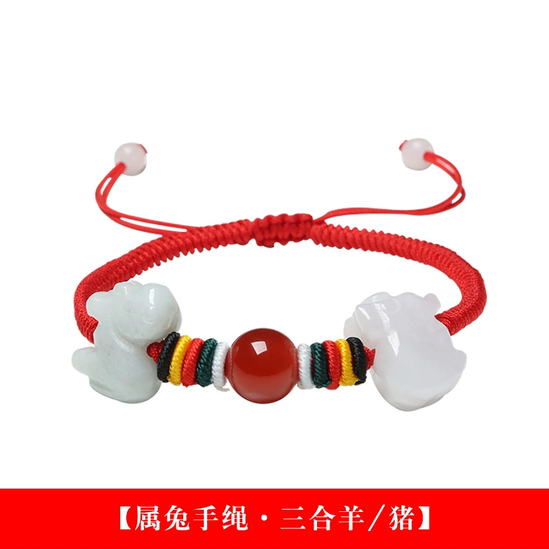 Jade jade zodiac rat zodiac rabbit zodiac snake zodiac horse portable bracelet 2024 mascot animal year red rope bracelet