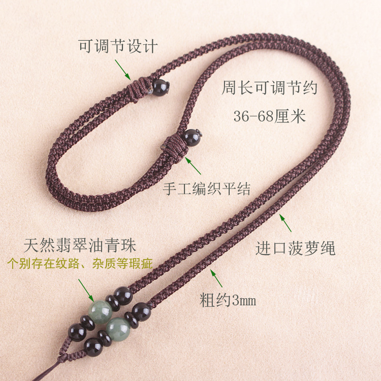 Jade oil green jade stone lanyard strong hand woven pendant rope DIY with gold jade pendant necklace rope wholesale