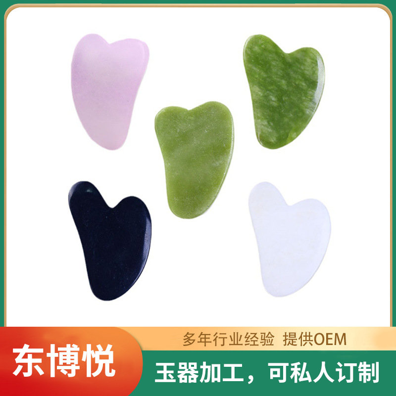 | nameOriginal | Jade scraping plate powder crystal horn heart-shaped obsidian quartzite Xiuyu White green scraping plate factory direct sales |