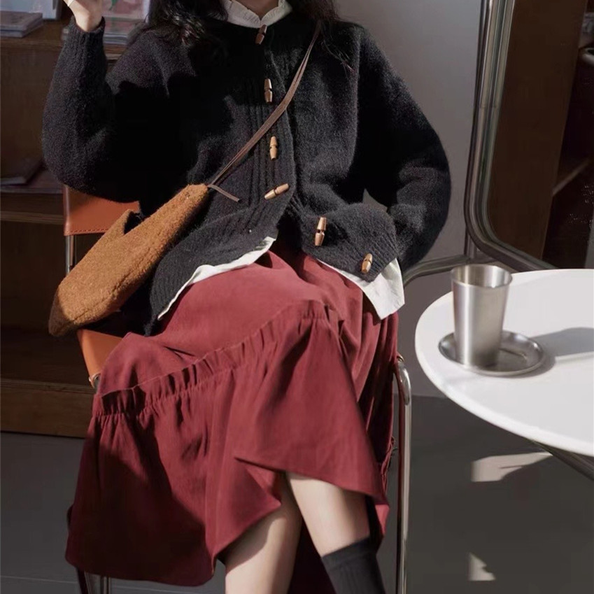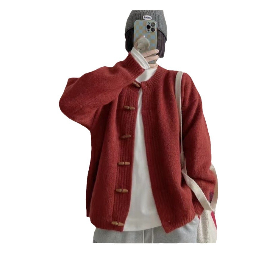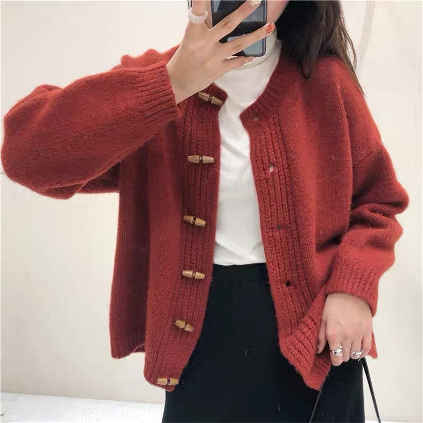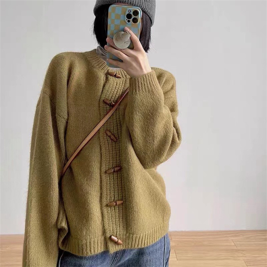 | nameOriginal | Japan and South Korea casual wind knitwear female 2023 autumn and winter New retro horn buckle loose thin soft waxy sweater coat |