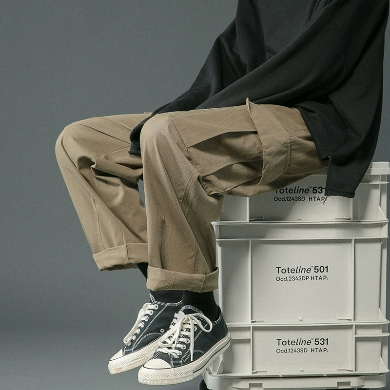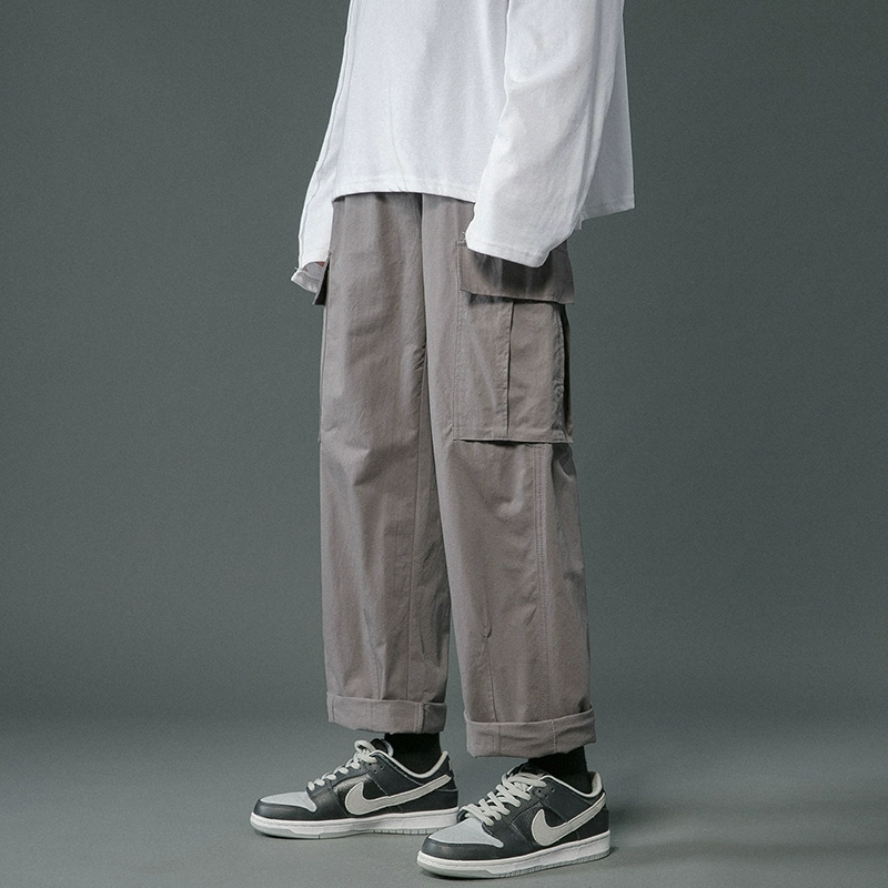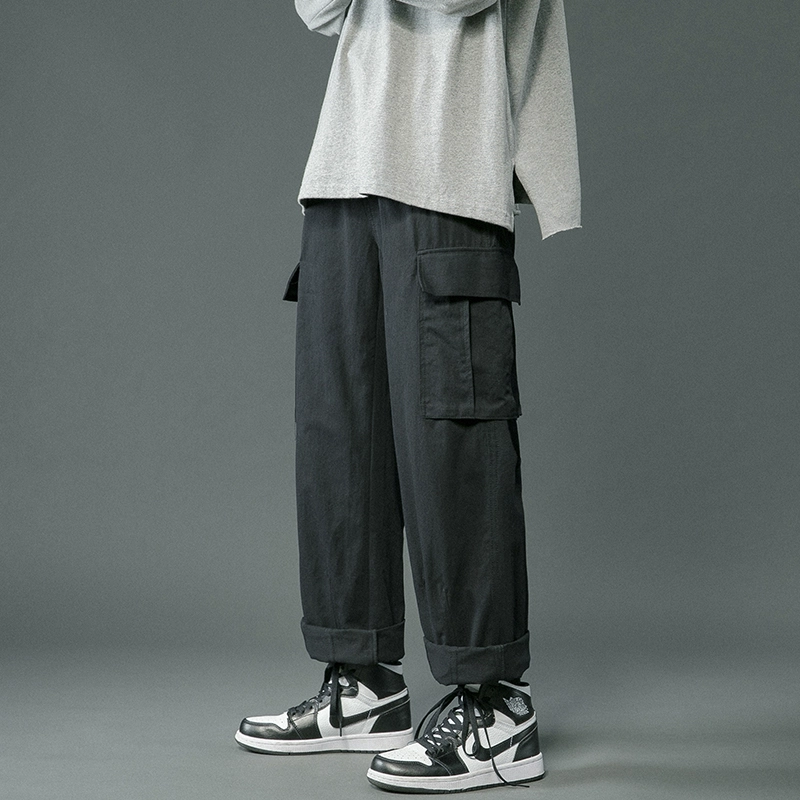 | nameOriginal | Japanese all-match overalls men's vibe fashion brand loose straight casual pants Hong Kong style solid color wide leg neutral long pants |
