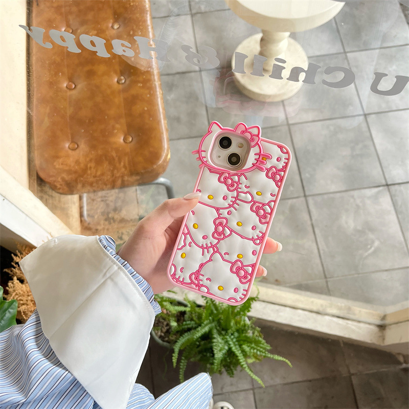 Japanese and Korean Apple 14Pro Max Cartoon Cute 12/13Pro Pink Line Kt Cat 15Pro Mobile Phone Case Suitable for Soft