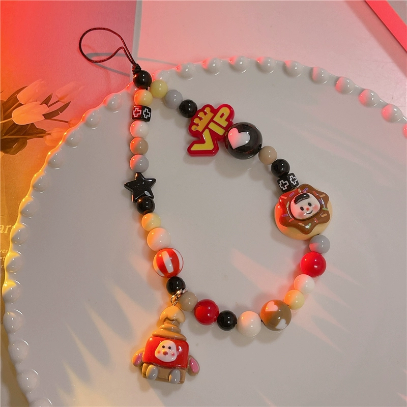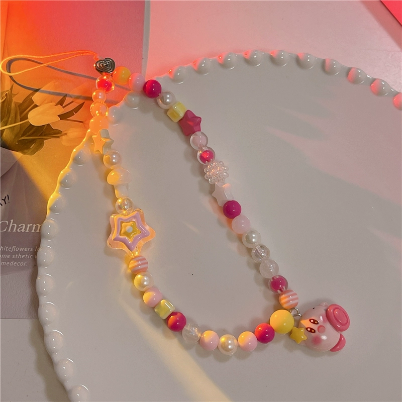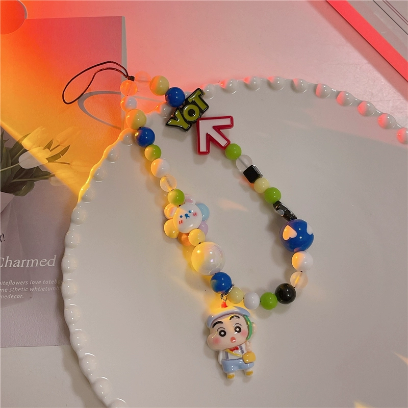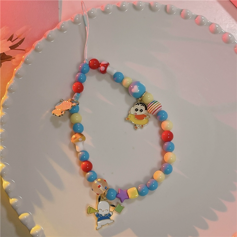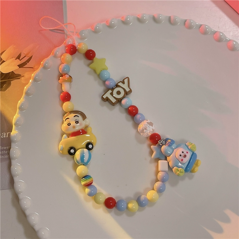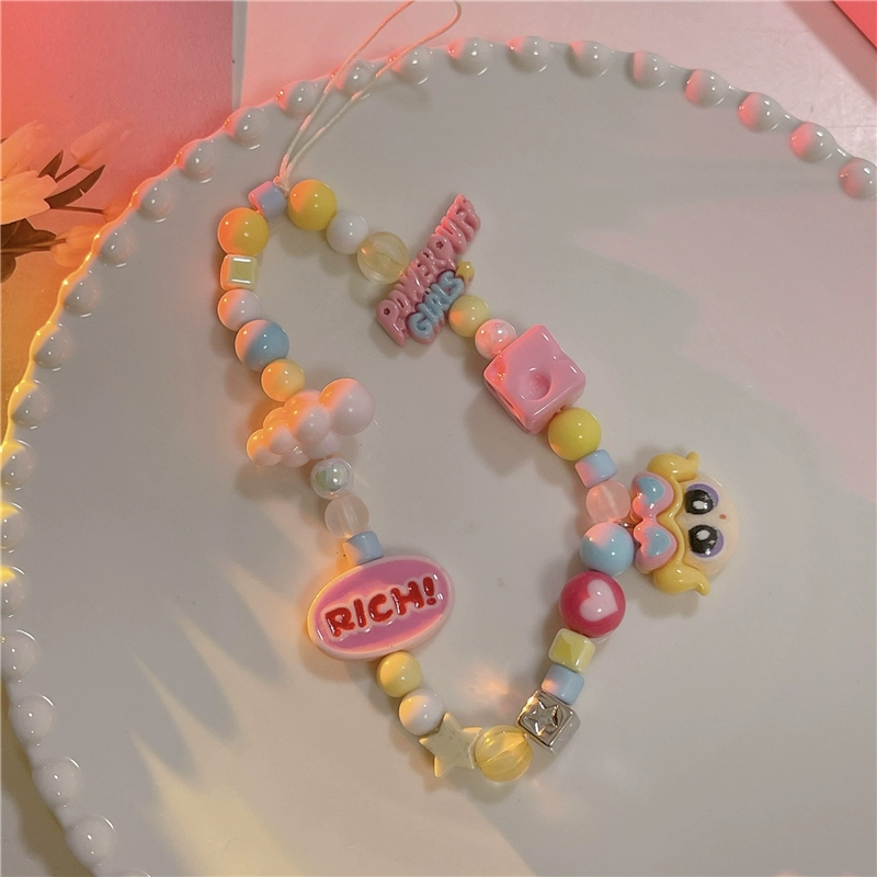 Japanese and Korean cute three-dimensional cartoon chain beaded bracelet mobile phone case pendant chain suitable for Apple 15promax Huawei mate60pro+ universal new pendant short chain pendant lanyard girl