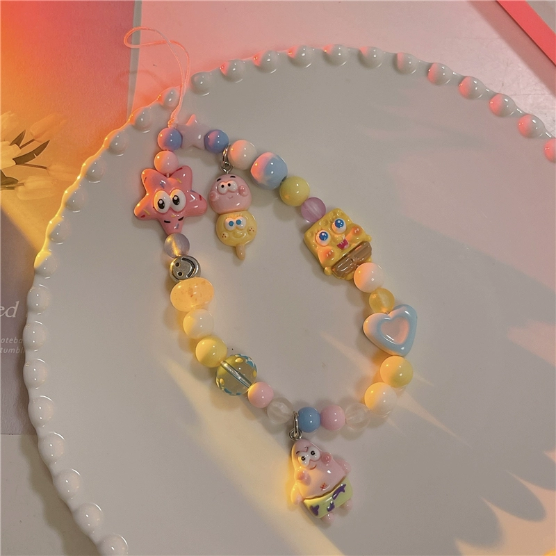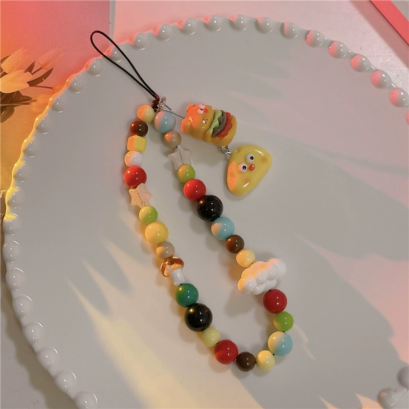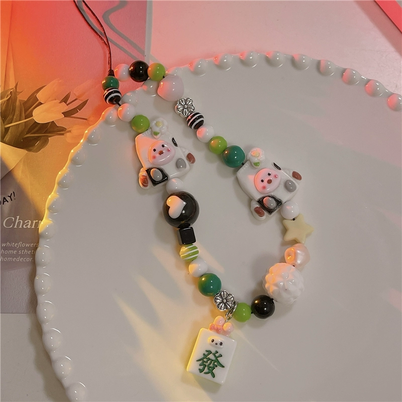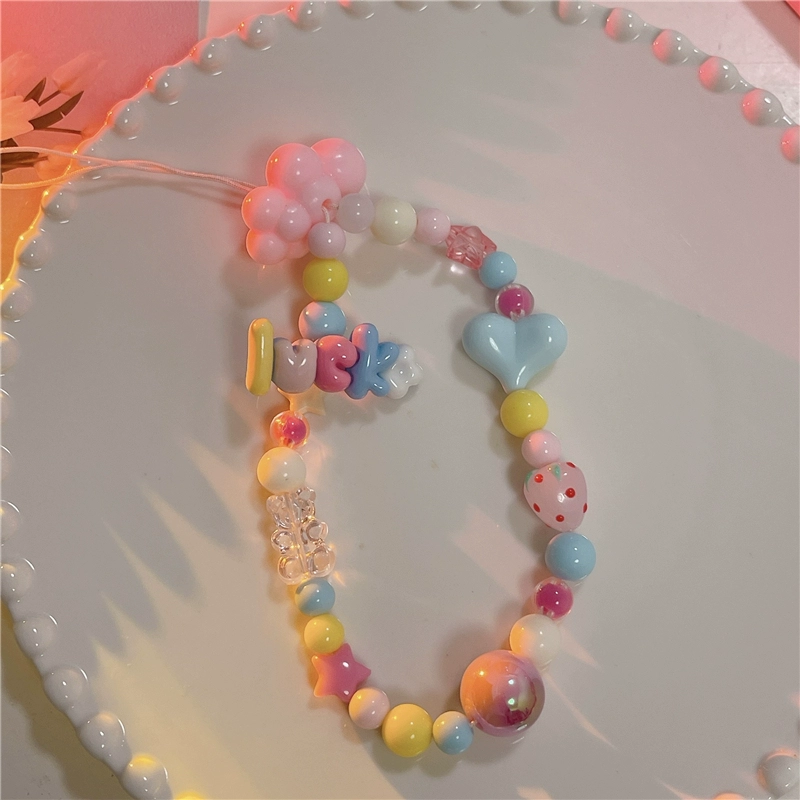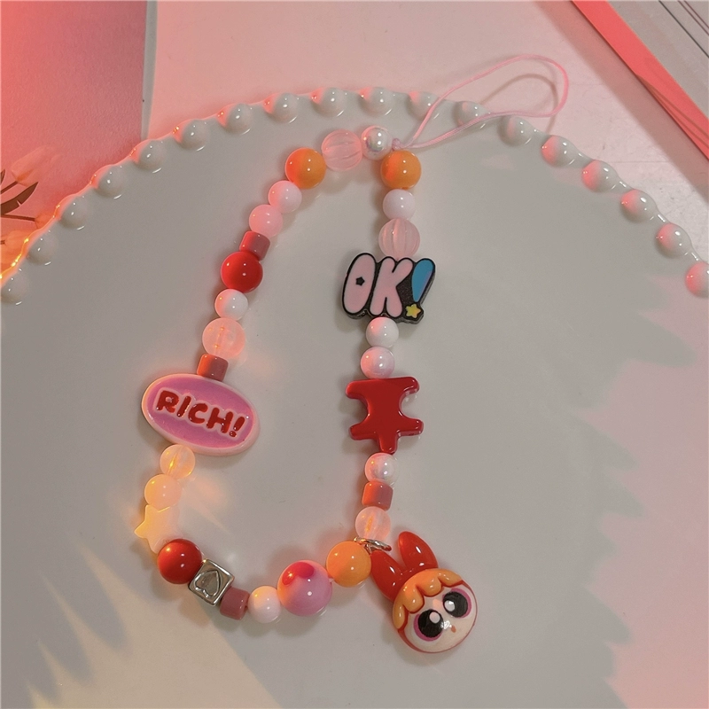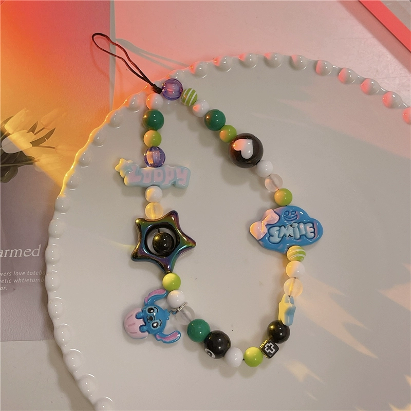 Japanese and Korean cute three-dimensional cartoon chain beaded bracelet mobile phone case pendant chain suitable for Apple 15promax Huawei mate60pro+ universal new pendant short chain pendant lanyard girl