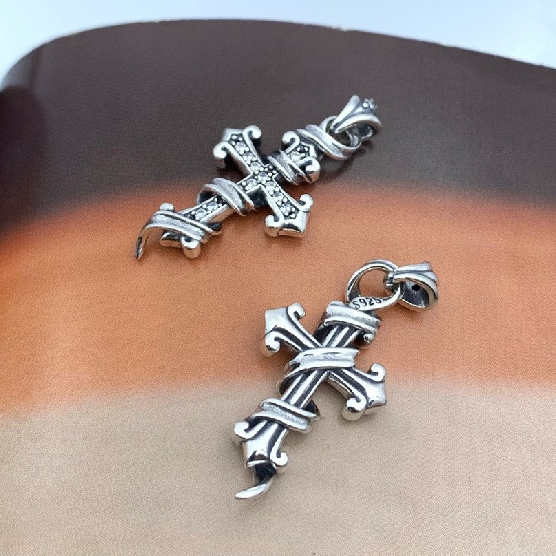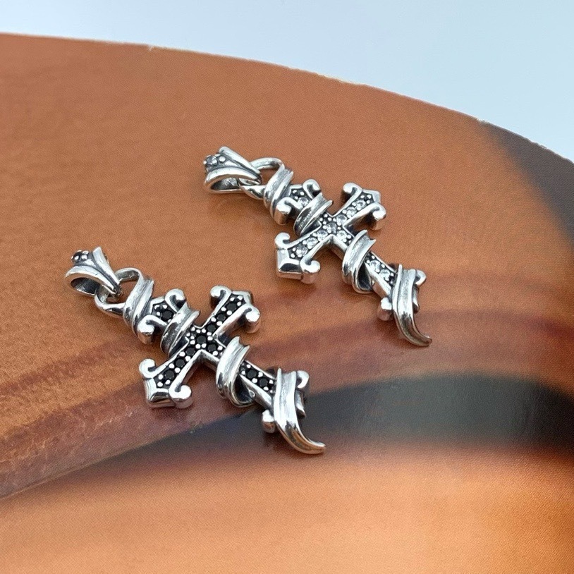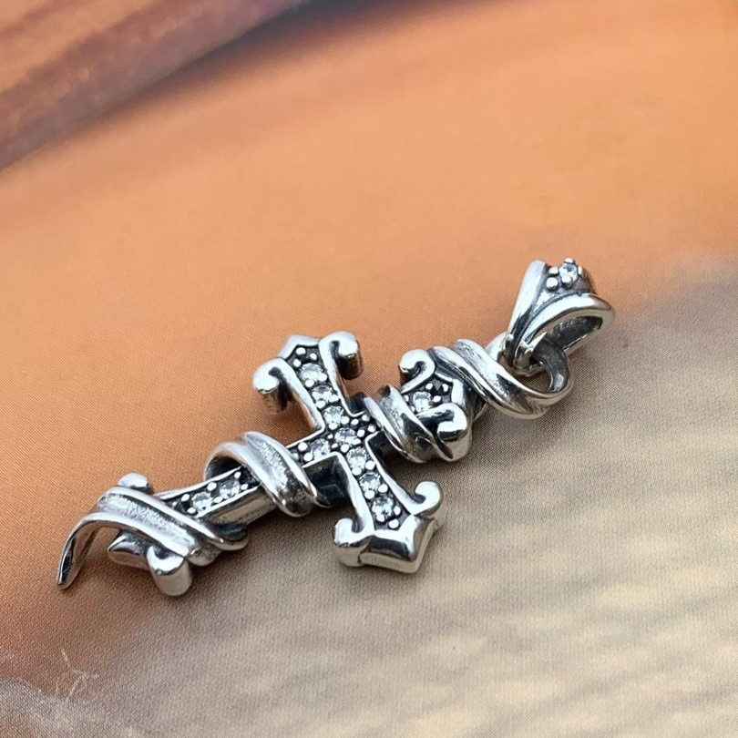 Japanese and Korean Jewelry Craftsman Design Boys Sterling Silver Vintage Rattan Flower Cross Pendant Diamond Hanging Pendant Necklace Pendant