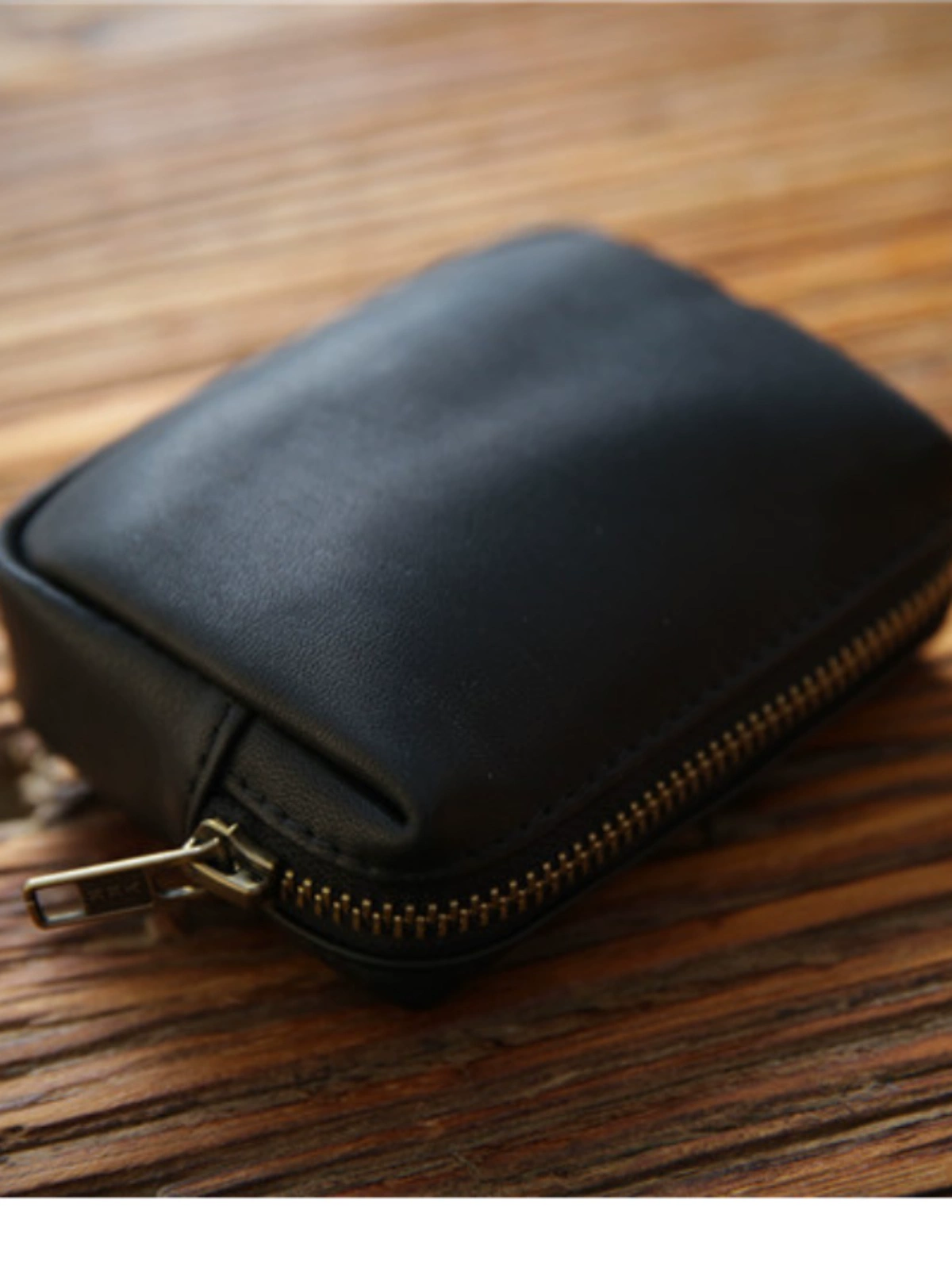 Japanese and Korean original cowhide coin purse women’s handmade zipper genuine leather three-dimensional coin holder card holder storage bag small wallet for men
