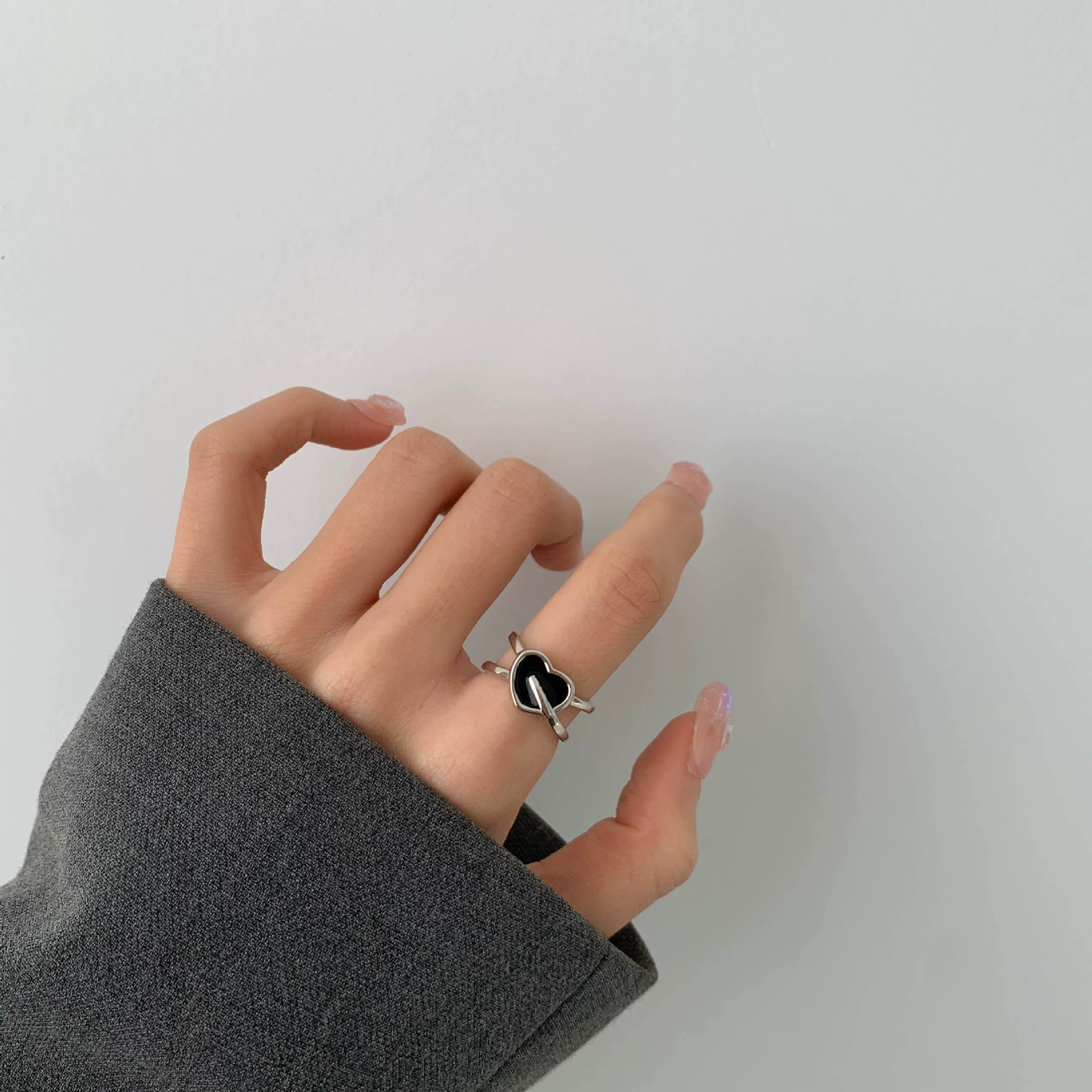 | nameOriginal | Japanese and Korean S925 silver poker A ring women's retro fashion love dripping glazed zircon open ring geometric index finger ring |