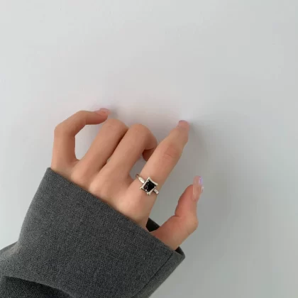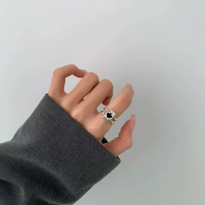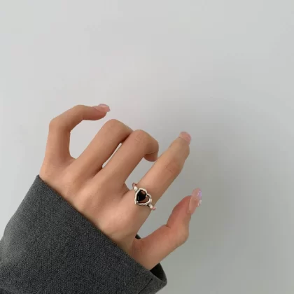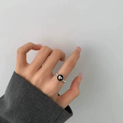 | nameOriginal | Japanese and Korean S925 silver poker A ring women's retro fashion love dripping glazed zircon open ring geometric index finger ring |