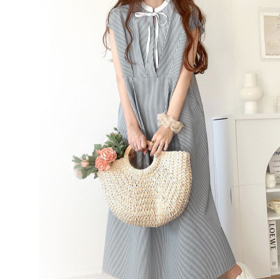 | nameOriginal | Japanese and Korean Style 2024 Summer New Loose Lantern Sleeve Back Lace Sweet and Fresh Front and Back Striped dress |