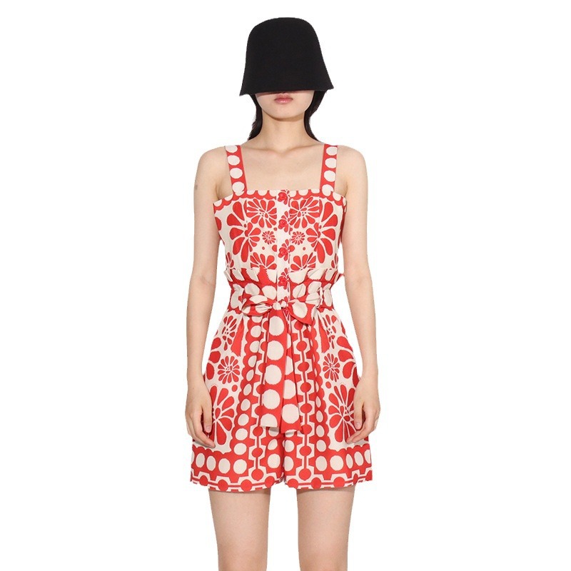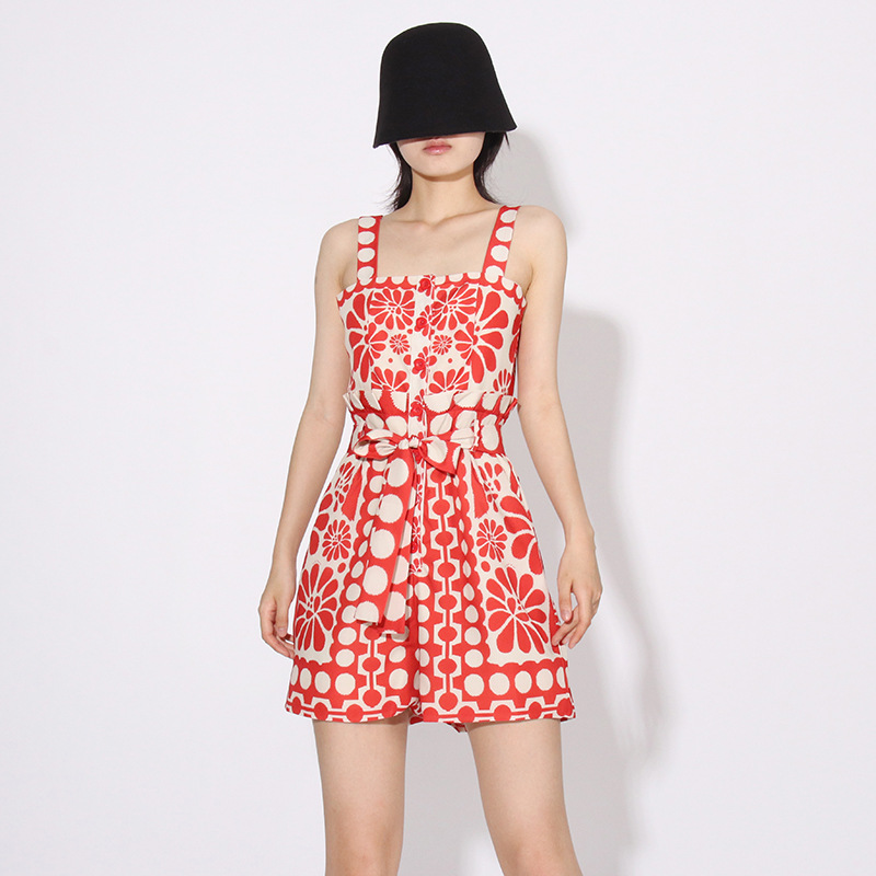 | nameOriginal | Japanese and Korean Style Casual 2024 Summer New Niche Design Wide Shoulder Strap Printed Belt Tight Waist Slimming Jumpsuit for Women |