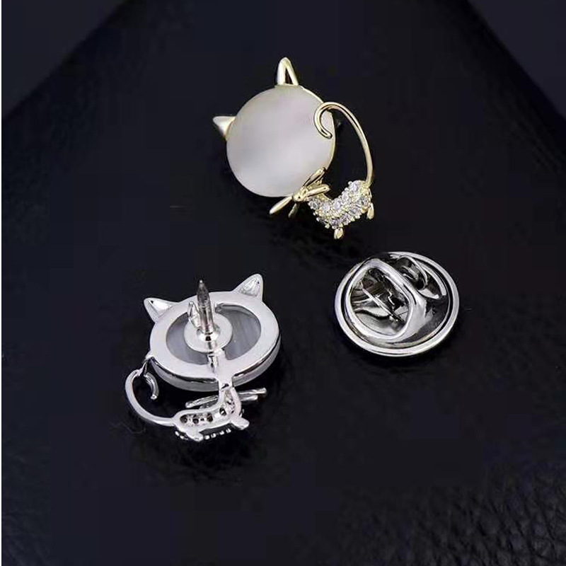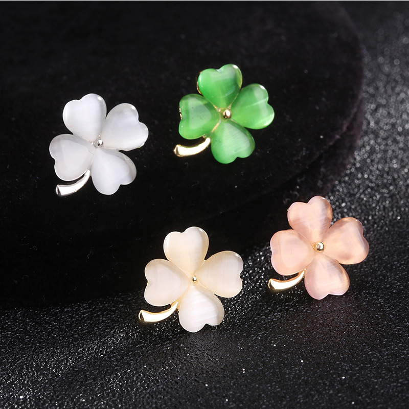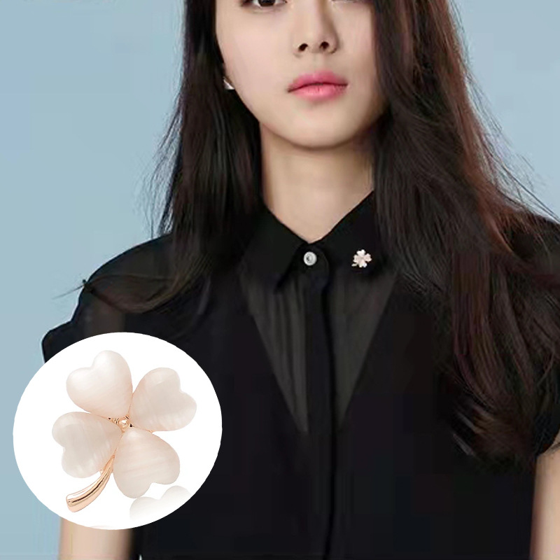 Japanese and Korean-style Cute Four-leaf Clover Anti-running Buckle High-end Simple Fixed Clothes Seam-free Dark Buckle Kitten Brooch Decoration