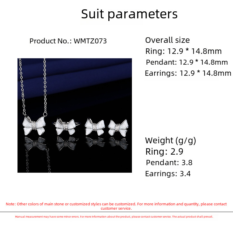 | nameOriginal | Japanese and Korean-style fashion all-match simple bow drop oil inlaid zircon decorative three-piece set ring stud earrings pendant necklace |