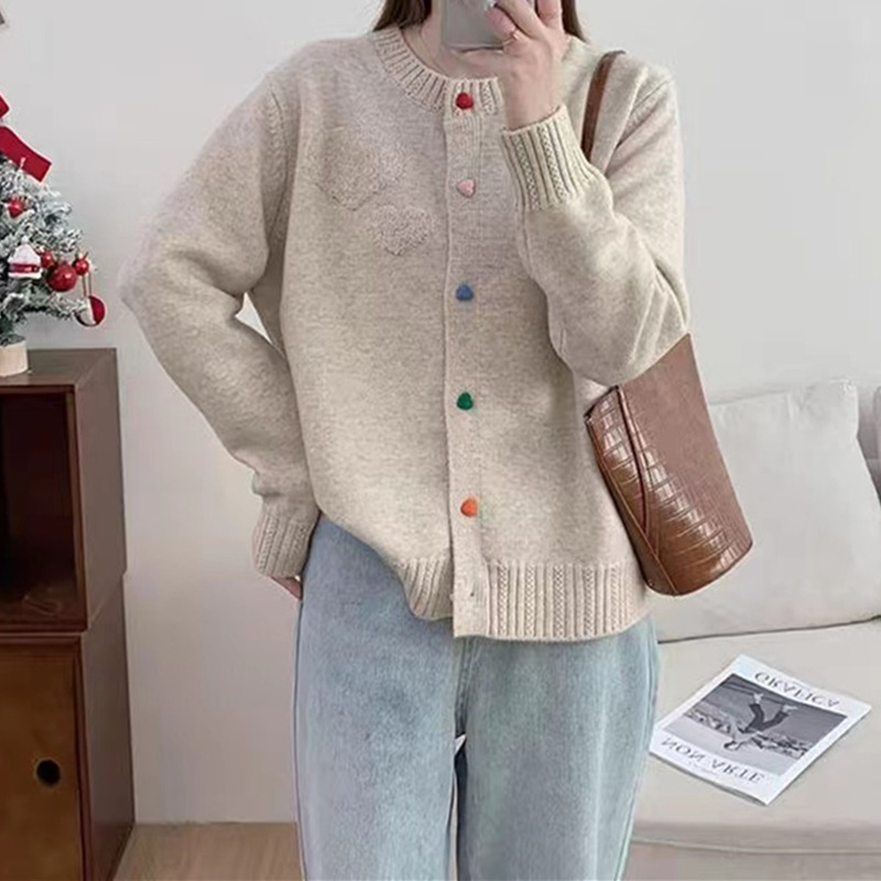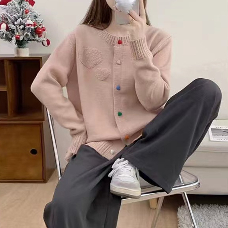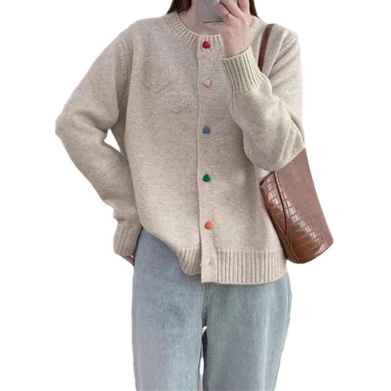 | nameOriginal | Japanese and Korean Style Lazy Style Crewneck Sweater Women's Autumn and Winter New Sweet Color Love Buckle Fashionable Knitted Cardigan Jacket |