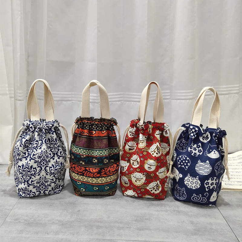| nameOriginal | # Japanese and Korean-style New Printed Drawstring Water Cup Bag Portable Canvas Handbag Lightweight Casual Small Square Bag Handbag Umbrella |