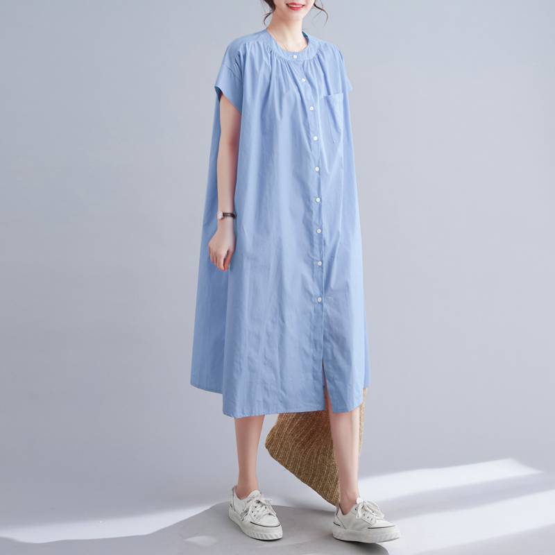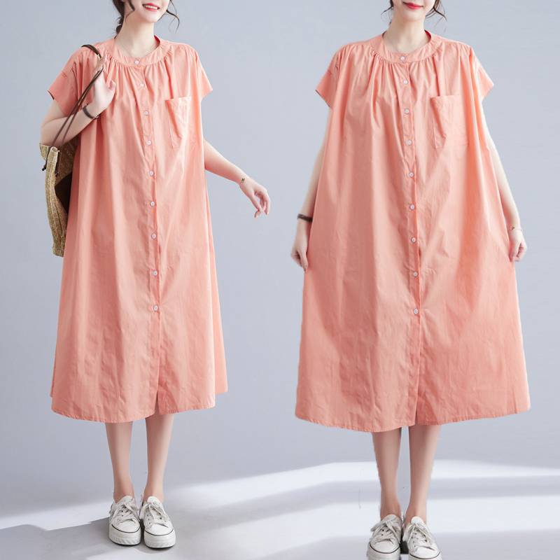 | nameOriginal | Japanese and Korean Style Over-the-Knee Dress 2024 Summer Solid Color Vertical Collar Single-breasted Pocket Loose plus size Shirt dress Women |