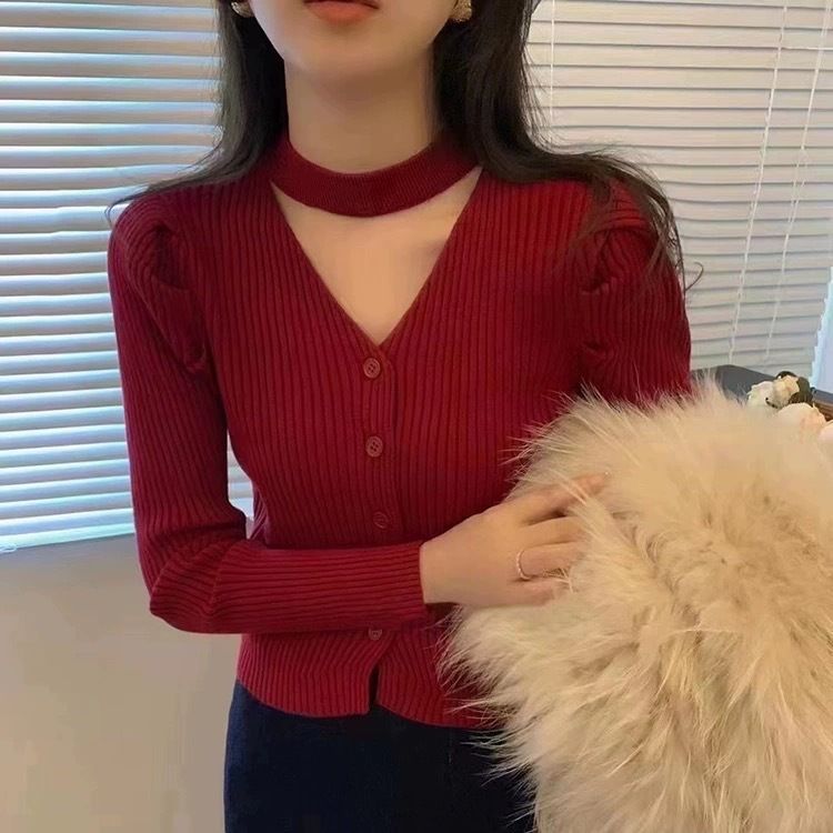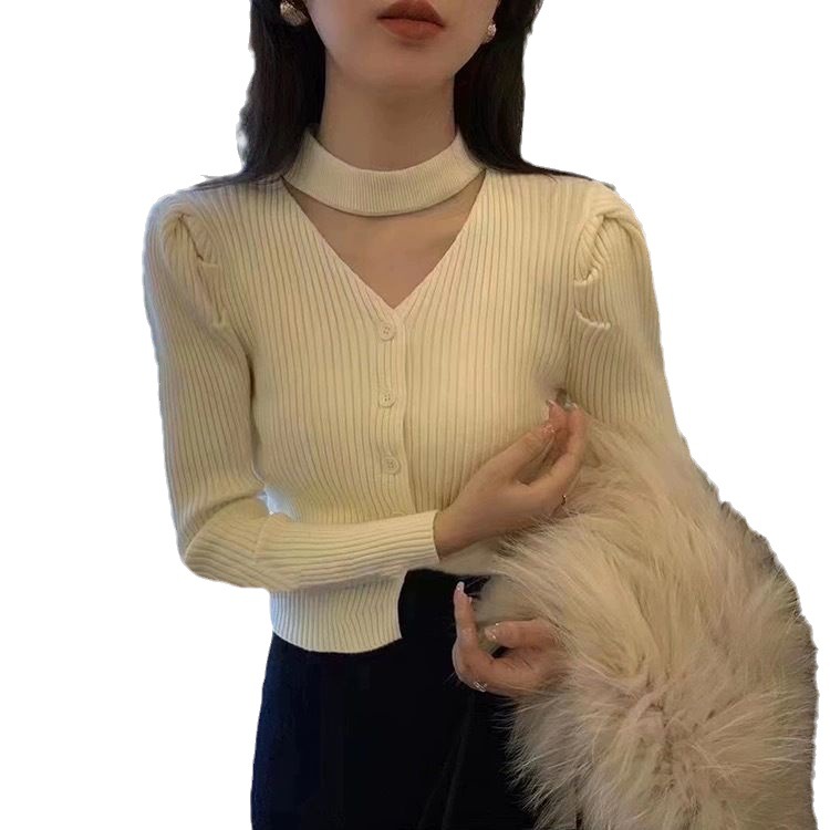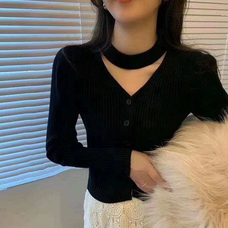 | nameOriginal | Japanese and Korean Style Slim-fit Slimming Hanging Neck Knitted Cardigan Autumn and Winter 2023 New Solid Color Long Sleeve Sweater Women's Base Top |