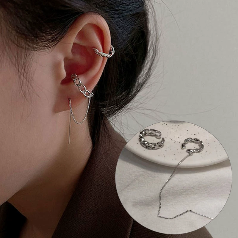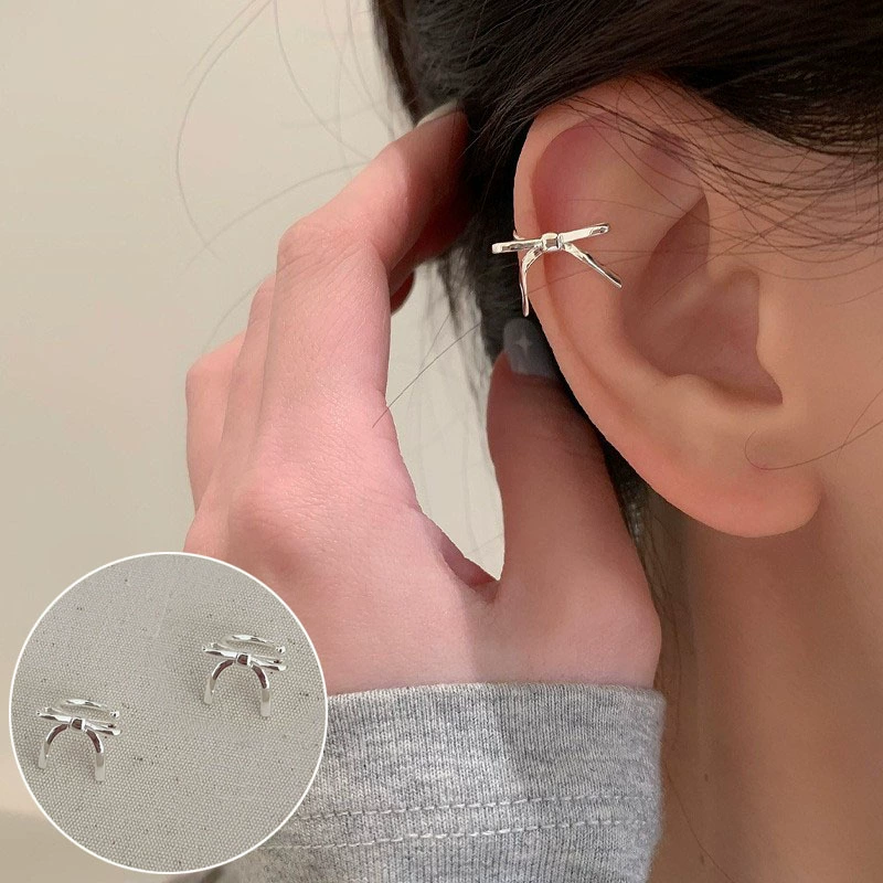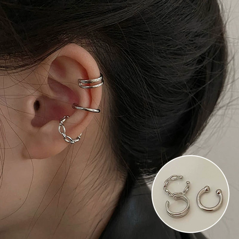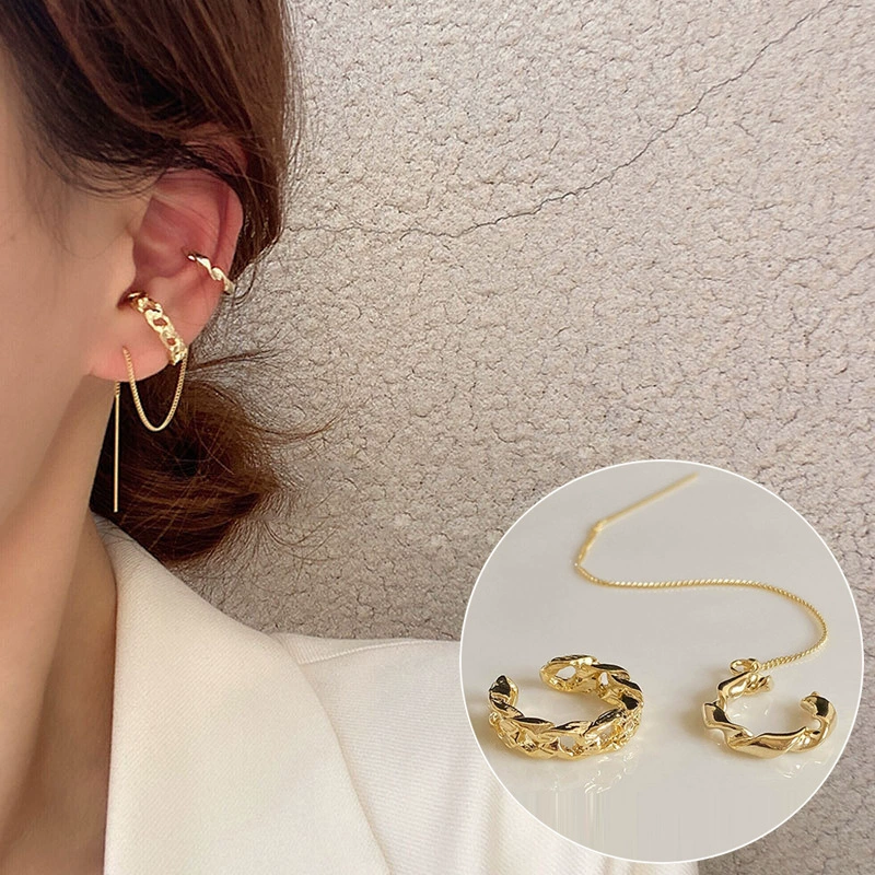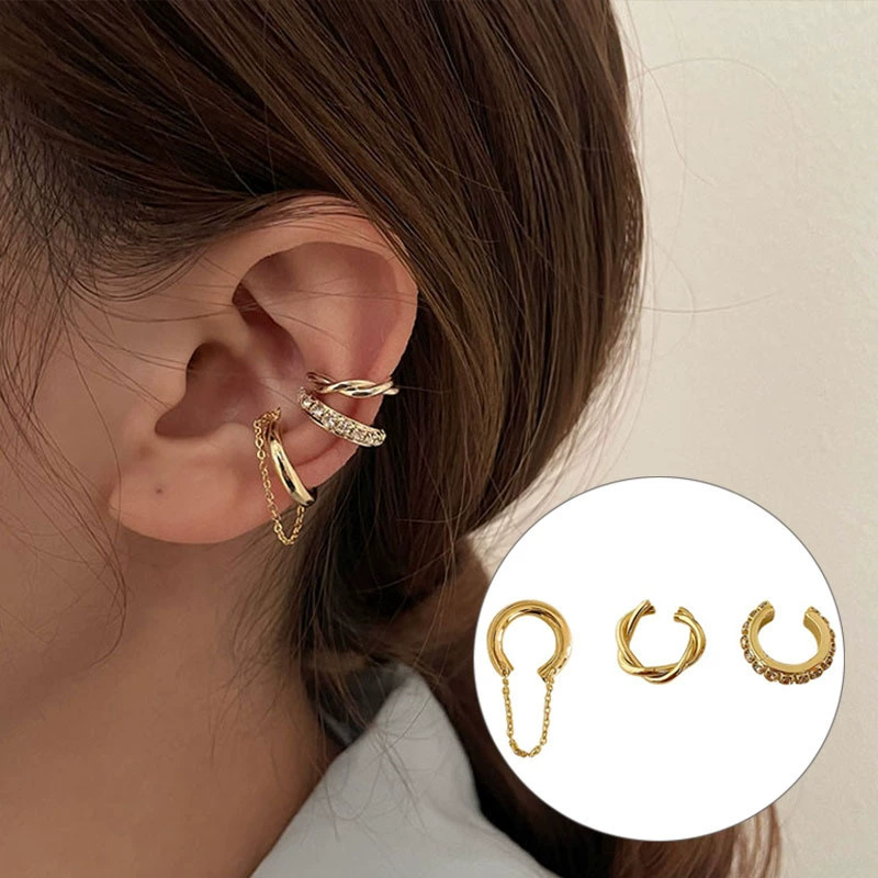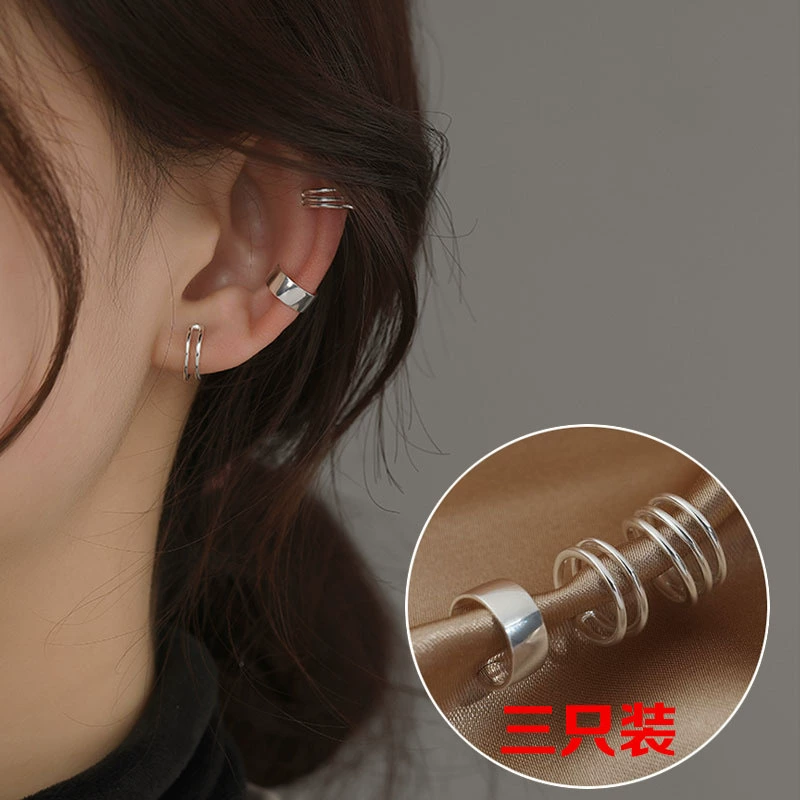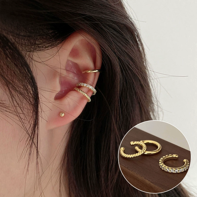 Japan and South Korea Chaoxian three -piece forest -based gold -colored ear bone clip female INS fashion temperament diamond students without ear pierced ear clip