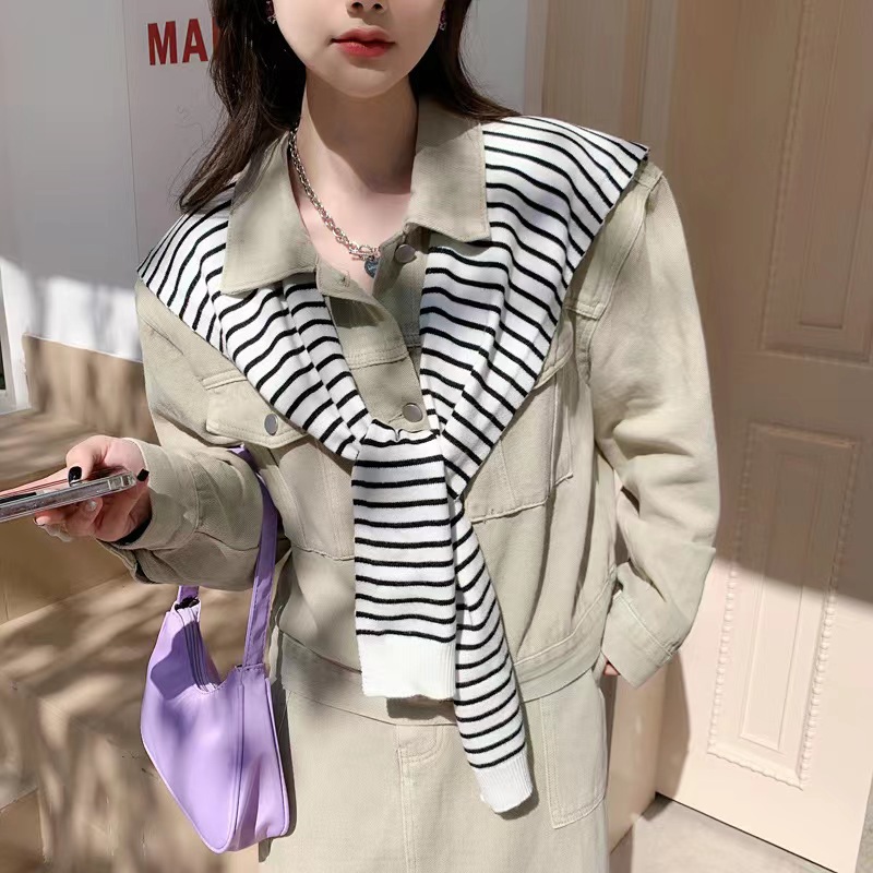 | nameOriginal | Japanese and Korean sweet live broadcast spring and autumn sweet style striped wool fake collar 6% wool knitted outer wear decorative knotted |