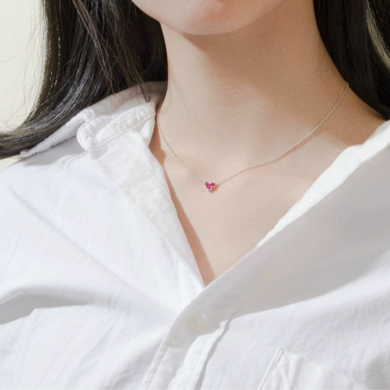 | nameOriginal | Japanese and Korean temperament S925 sterling silver fresh red love necklace women's versatile simple diamond pendant short clavicle chain |