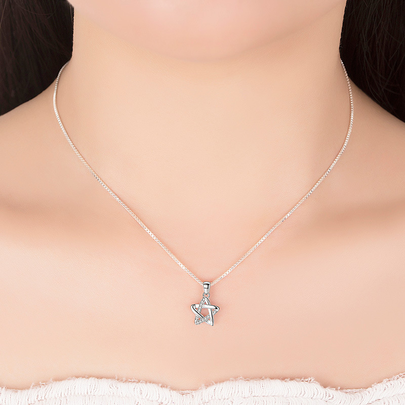 | nameOriginal | Japanese and Korean version of zircon hollow five-angle small star personality temperament necklace pendant ladies silver plated jewelry wholesale |