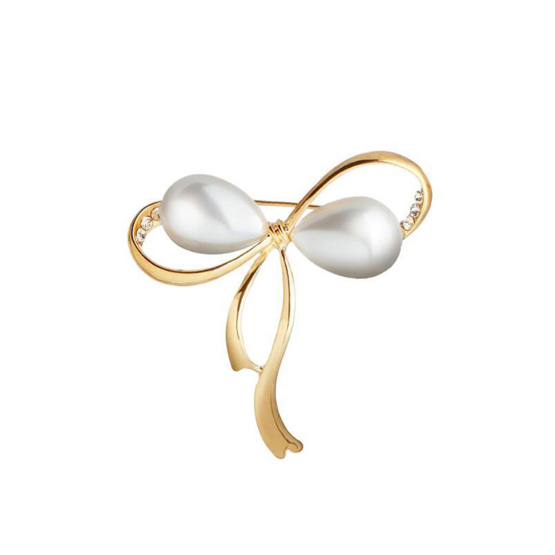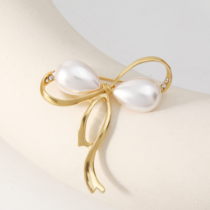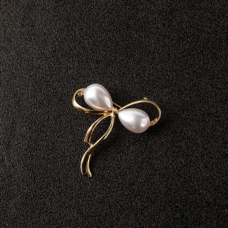 Japanese and Korean Women's High-end Brooch Exquisite Water Drops Pearl Pin Buckle Bow Collar Pin Elegant Anti-light Suit Corsage