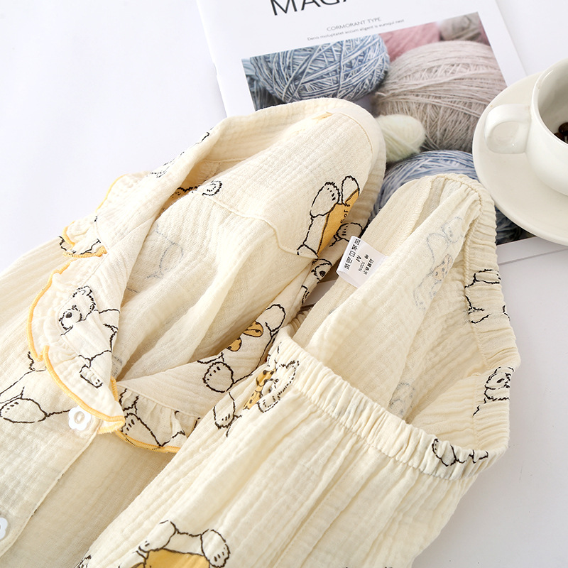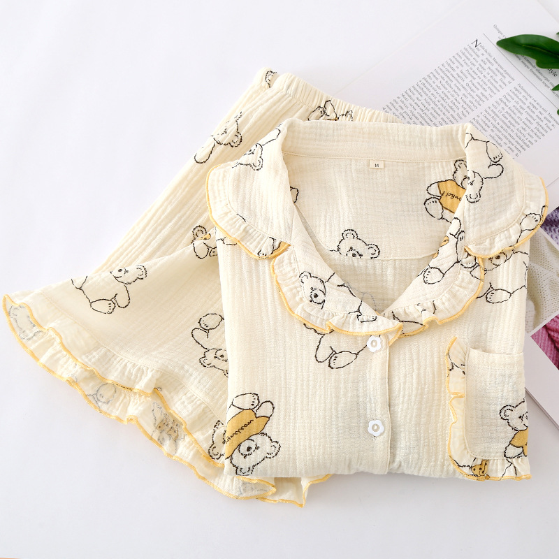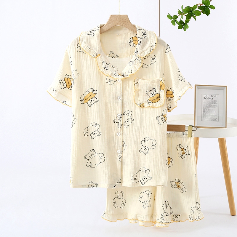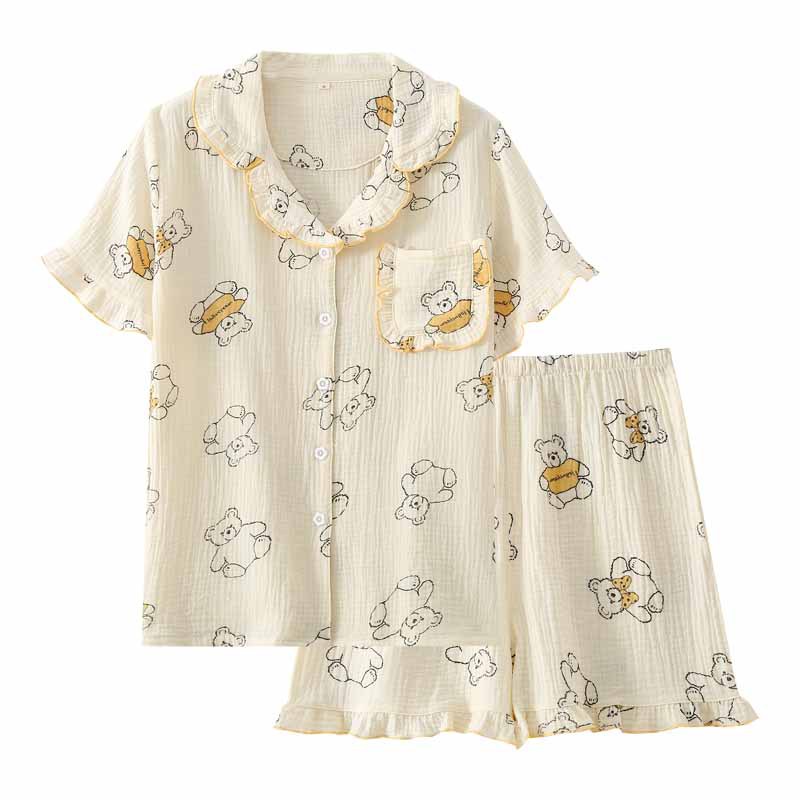 Japanese Bear Pajamas Women's Summer Pure Cotton Short-sleeved Shorts Cardigan Home Clothes Gauze Thin Cute Home Clothes