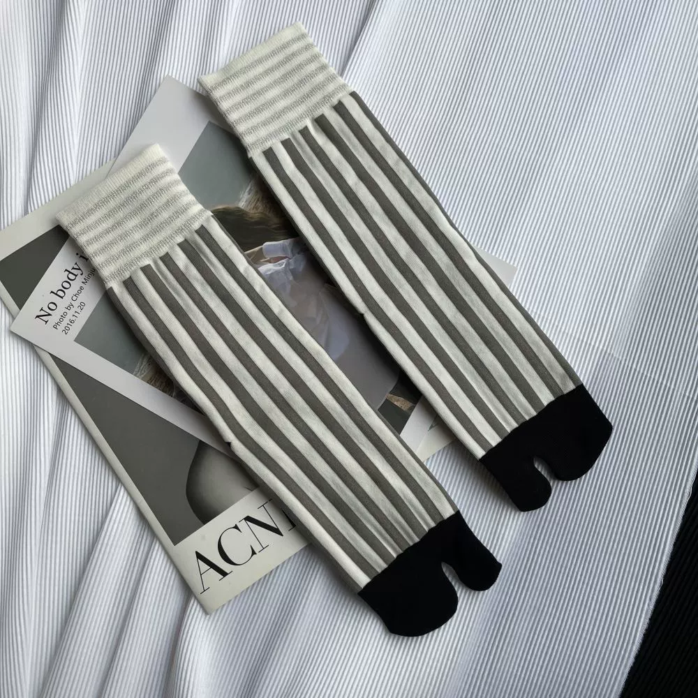 Japanese bright silk ribbed colorful vertical striped spring and summer two-toed socks split-toe socks retro all-match mid-calf sports socks