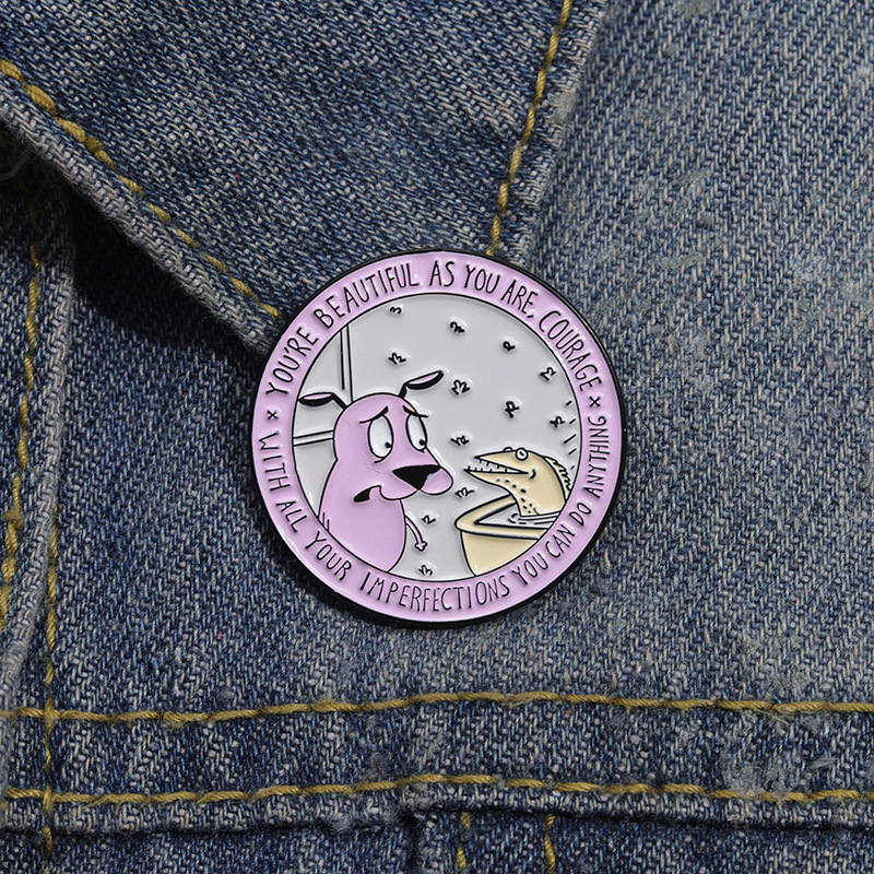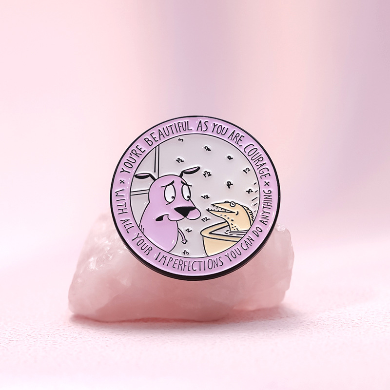 | nameOriginal | Japanese Cartoon Animation Purple Geometric Round Pet Puppy English Brave and Beautiful You Interesting Text Brooch |