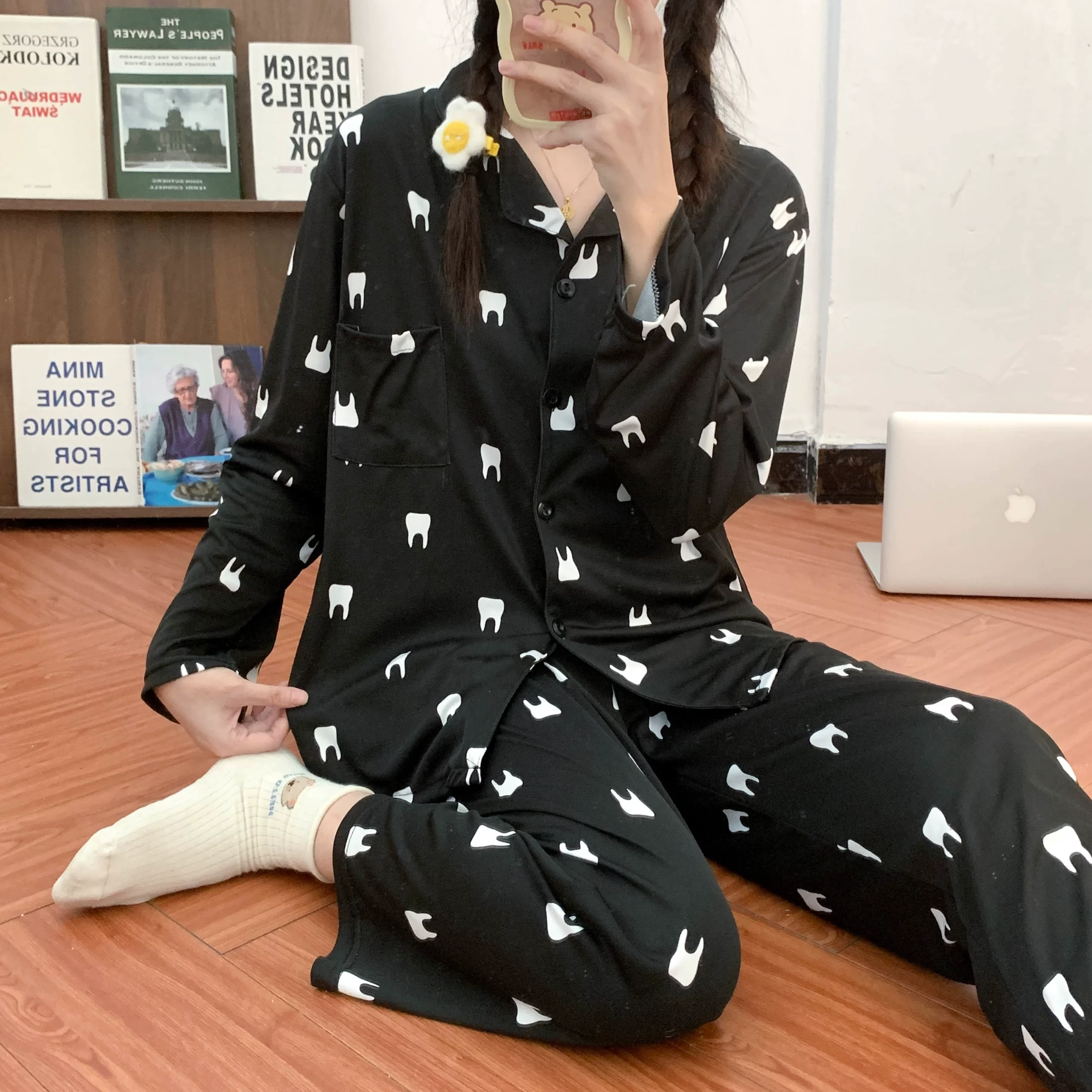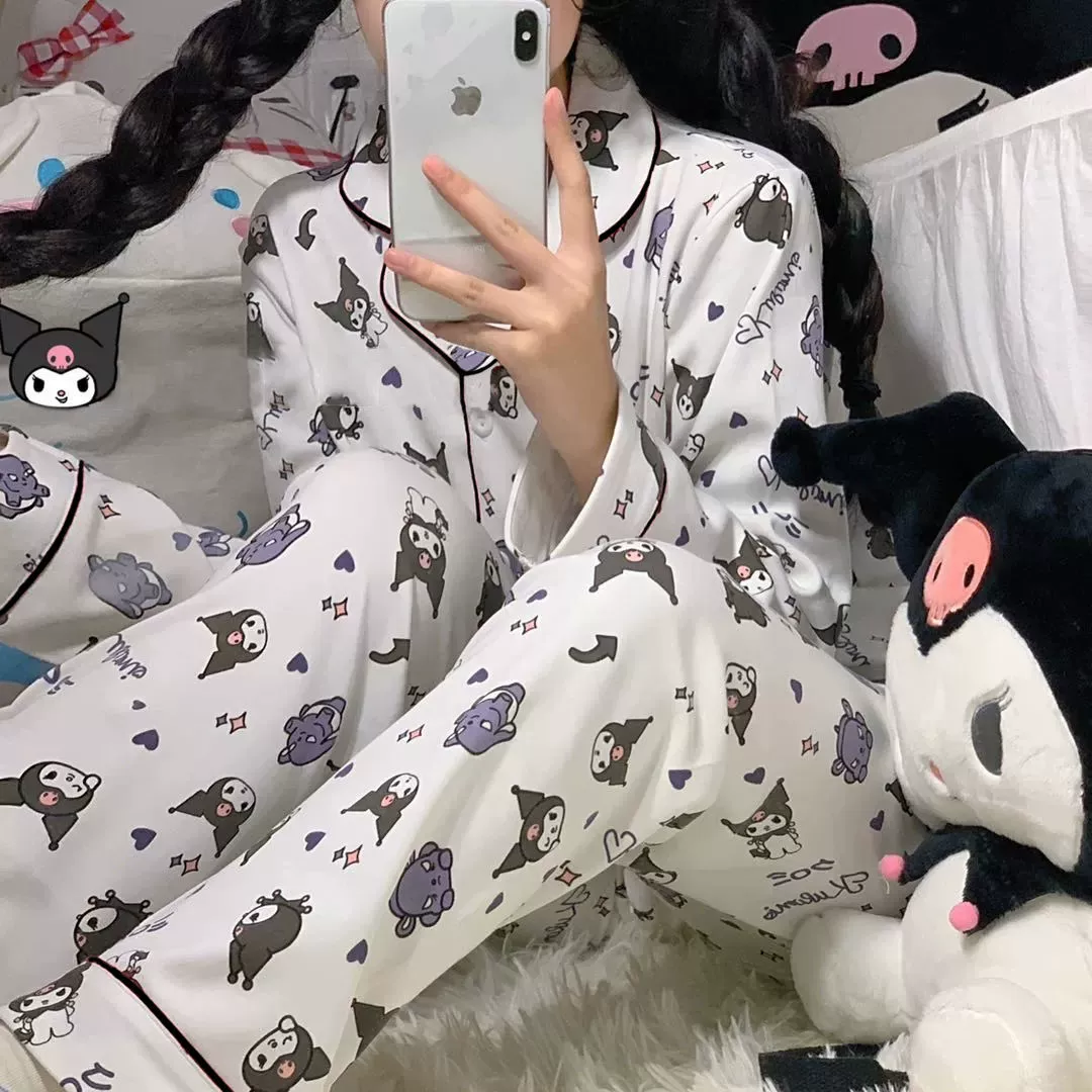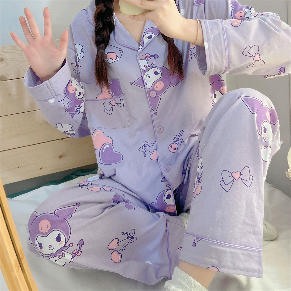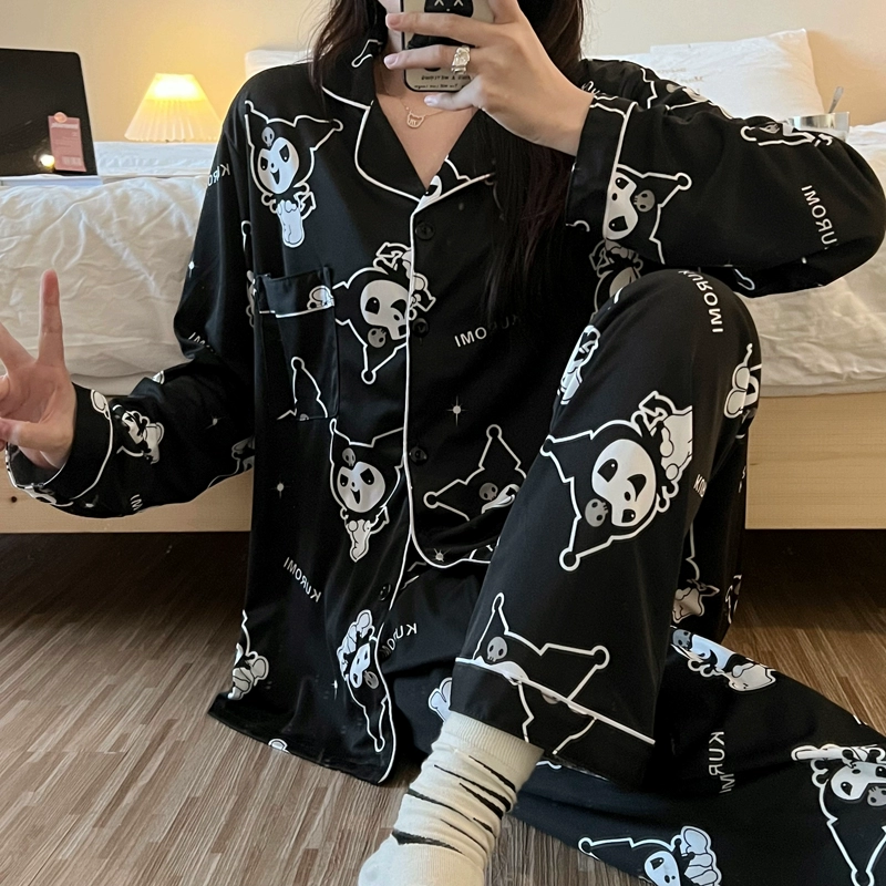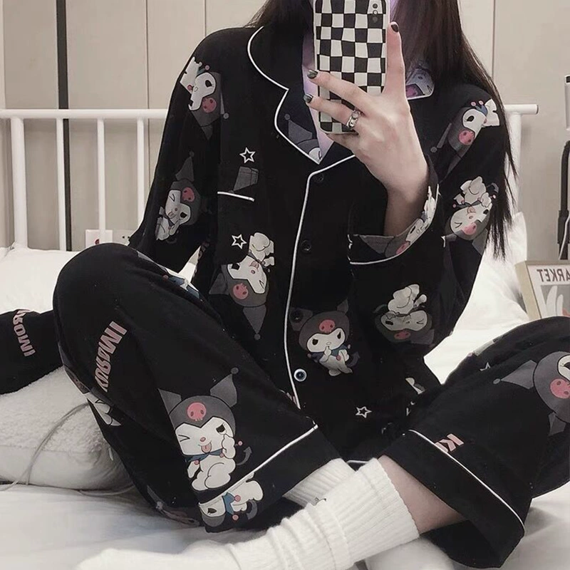 | nameOriginal | Japanese cartoon Kurome pure cotton pajamas for women spring and autumn ins style internet celebrity sweet dark long-sleeved student two-piece set |