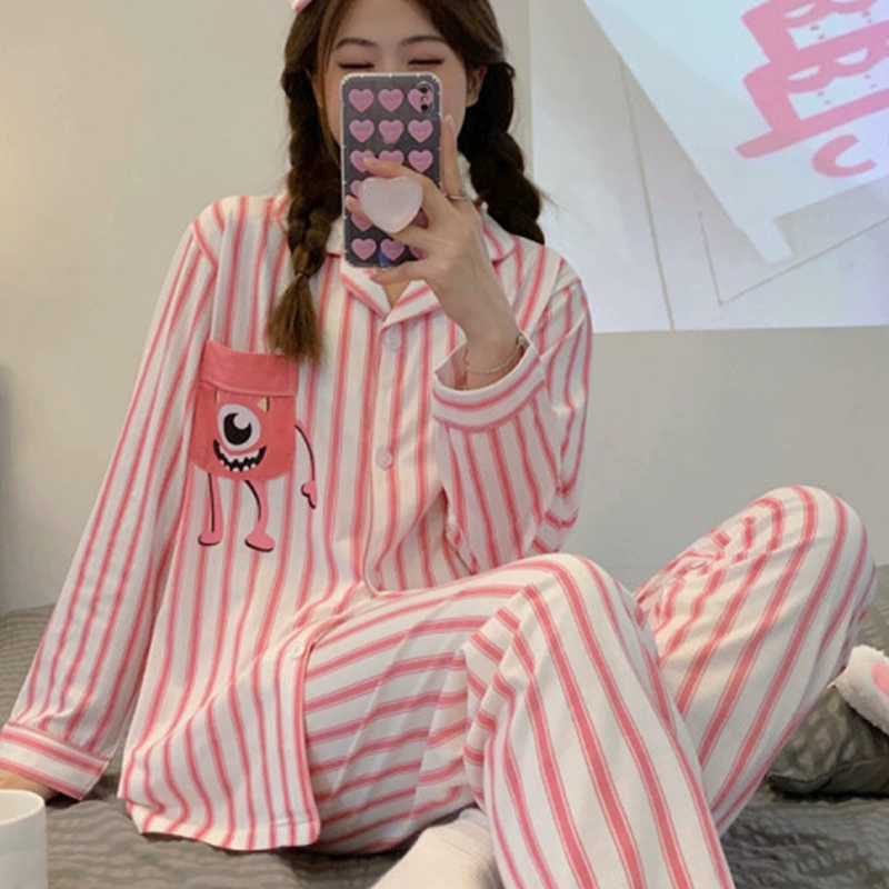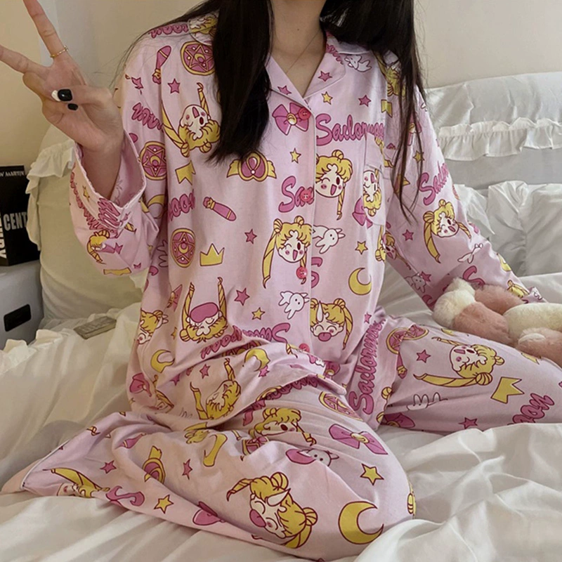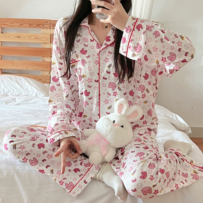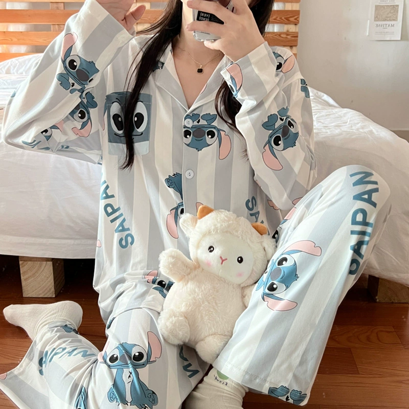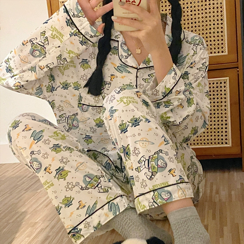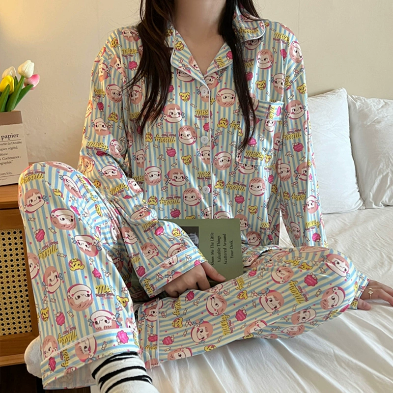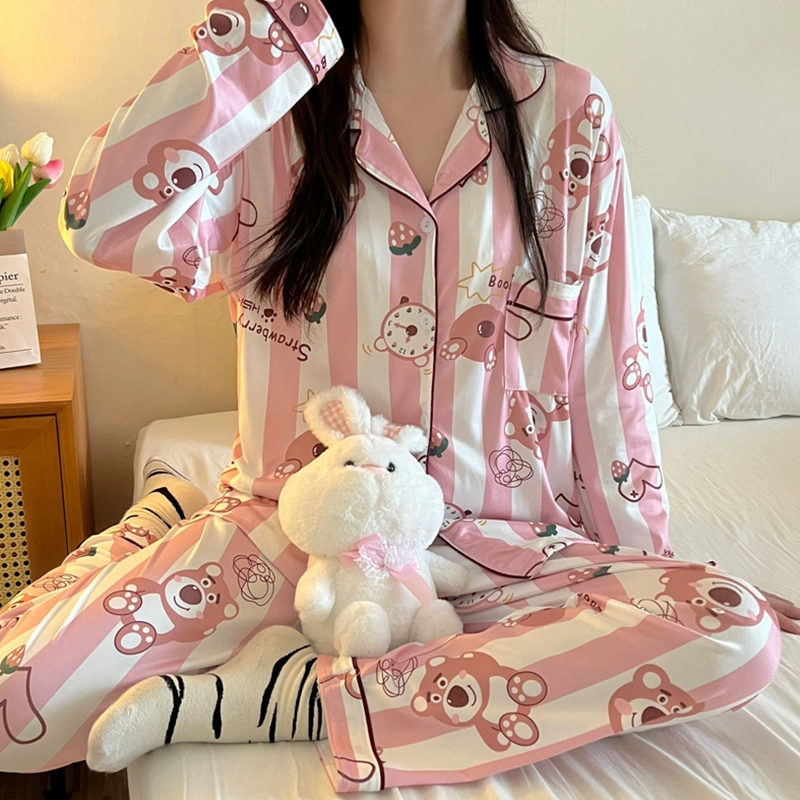 | nameOriginal | Japanese cartoon Kurome pure cotton pajamas for women spring and autumn ins style internet celebrity sweet dark long-sleeved student two-piece set |