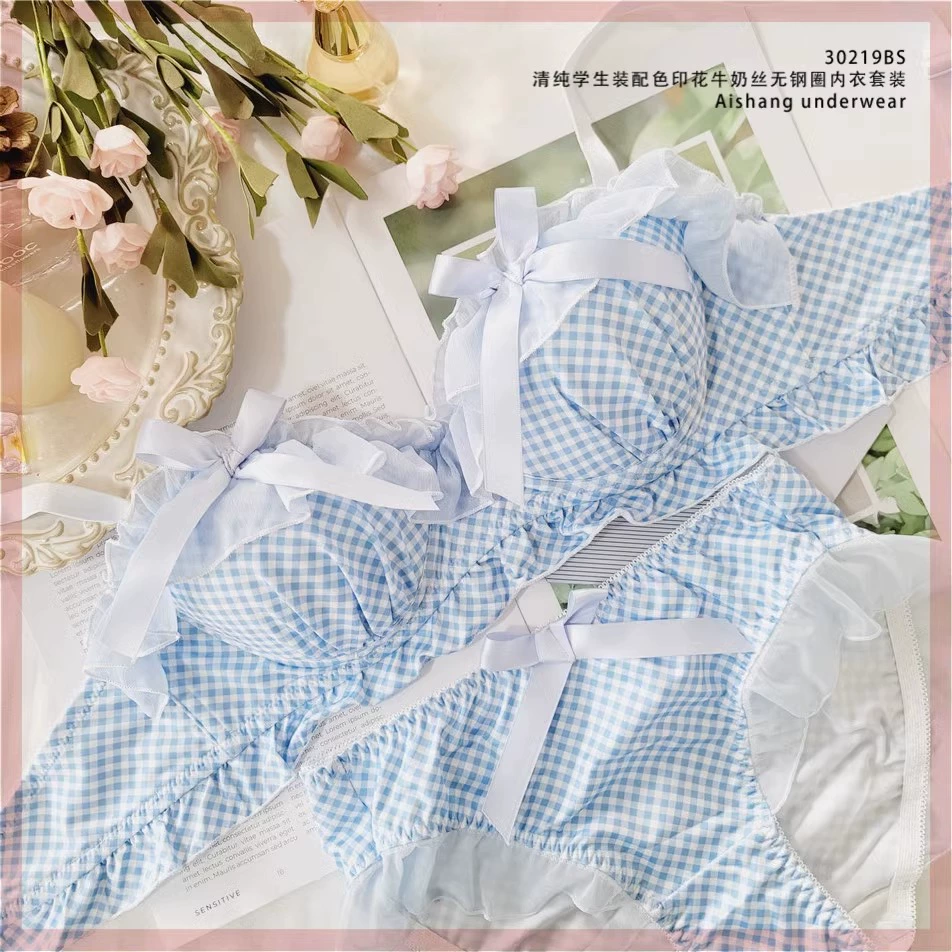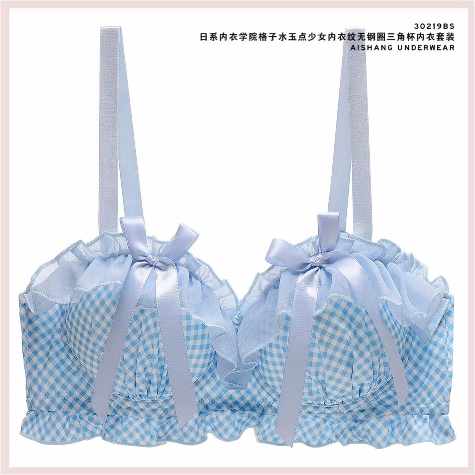 | nameOriginal | Japanese college girls bra set sweet bow polka dots no rims small chest push-up flat chest special underwear |