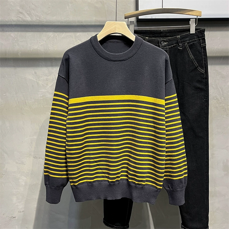 | nameOriginal | Japanese color block striped sweater men's loose ins trendy round neck pullover handsome bottoming long-sleeved top |