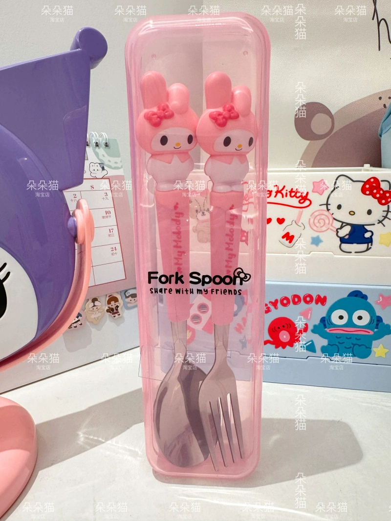 Japanese cute cartoon spoon fork tableware set children's tableware student stainless steel dining spoon
