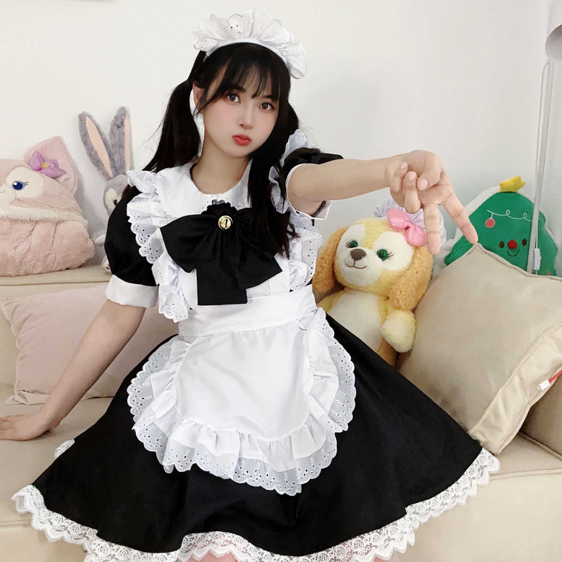 Japanese cute lolita bunny cosplay black and white maid maid outfit lolita dress