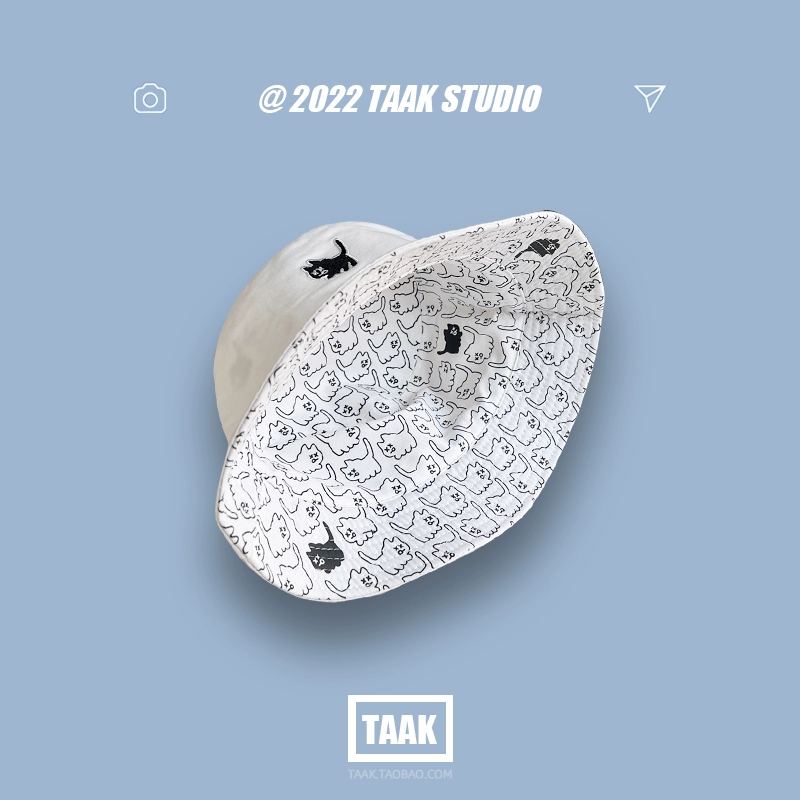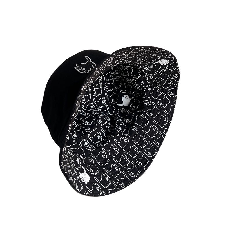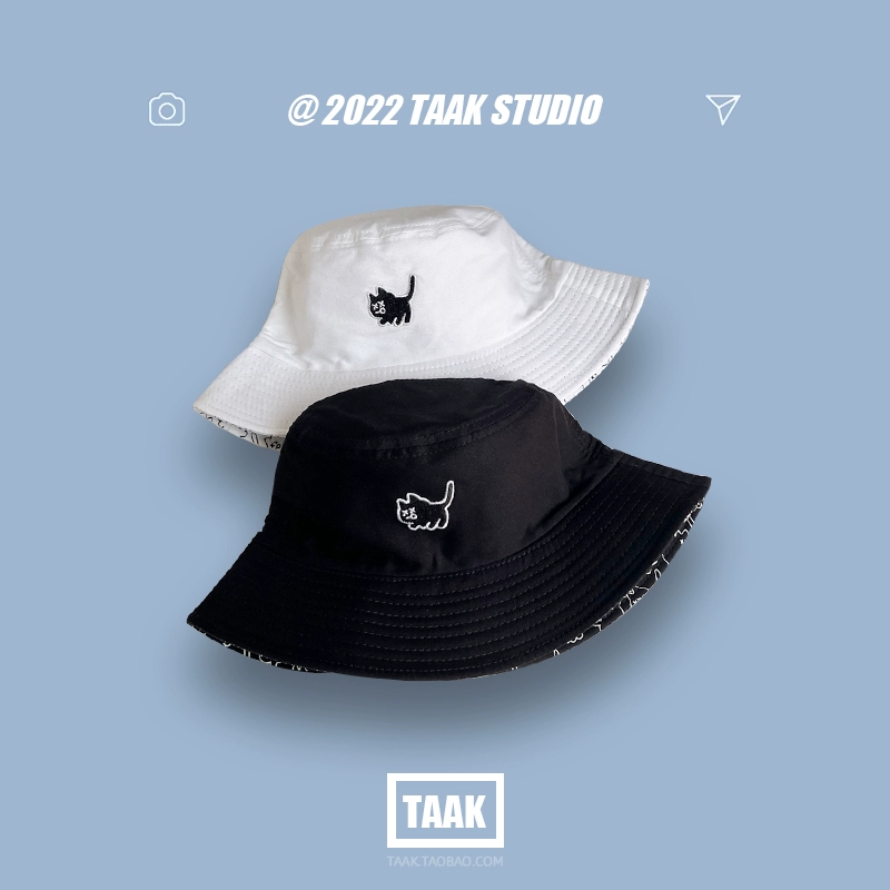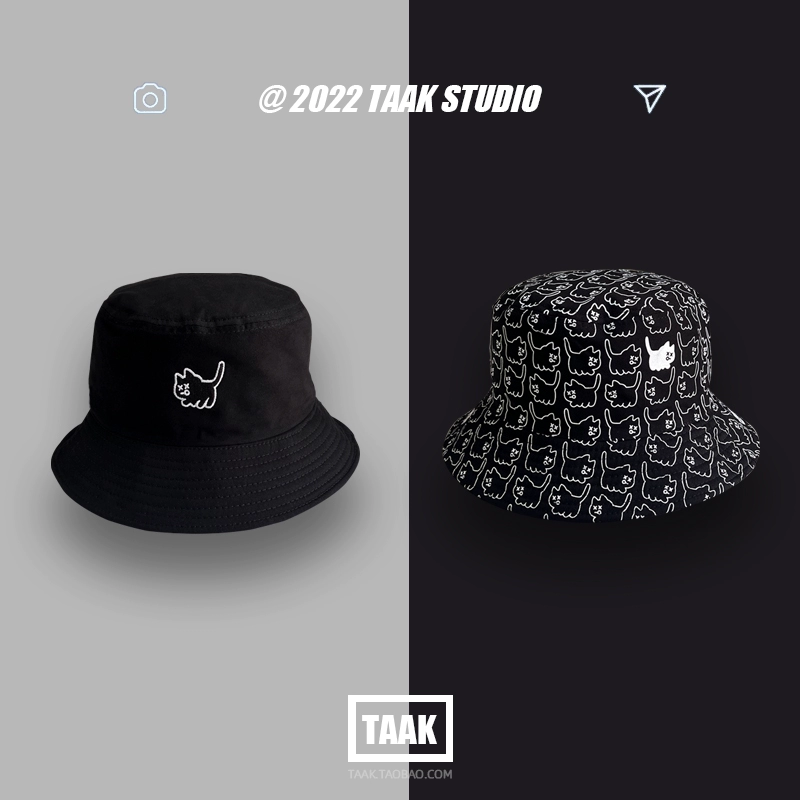 Japanese double-sided hat for women summer Korean version cute cat fisherman hat sun protection basin hat sun hat student couple