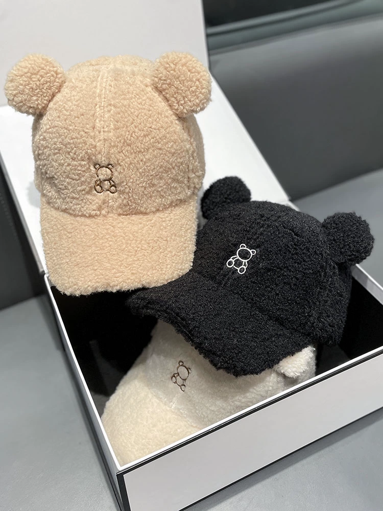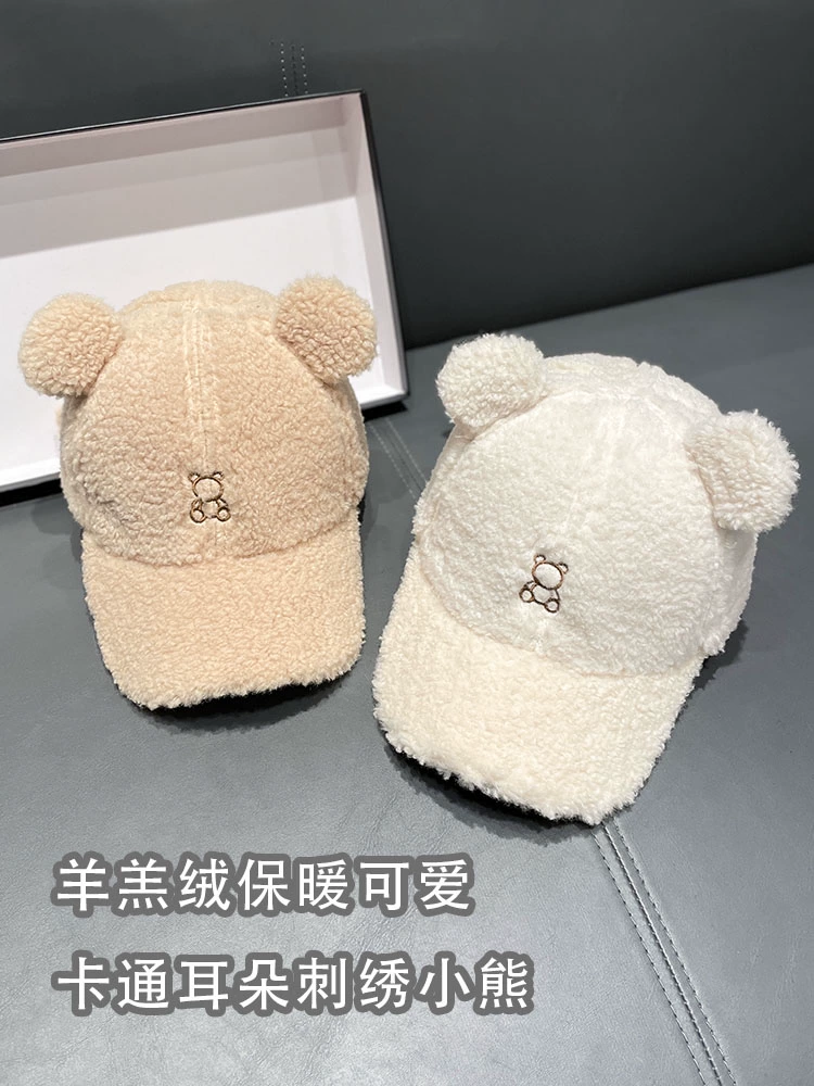 | nameOriginal | Japanese embroidered cute bear ears baseball hat women's autumn and winter Internet celebrity lamb velvet warm and versatile peaked cap |