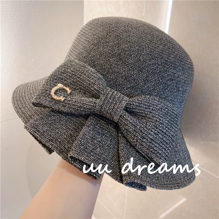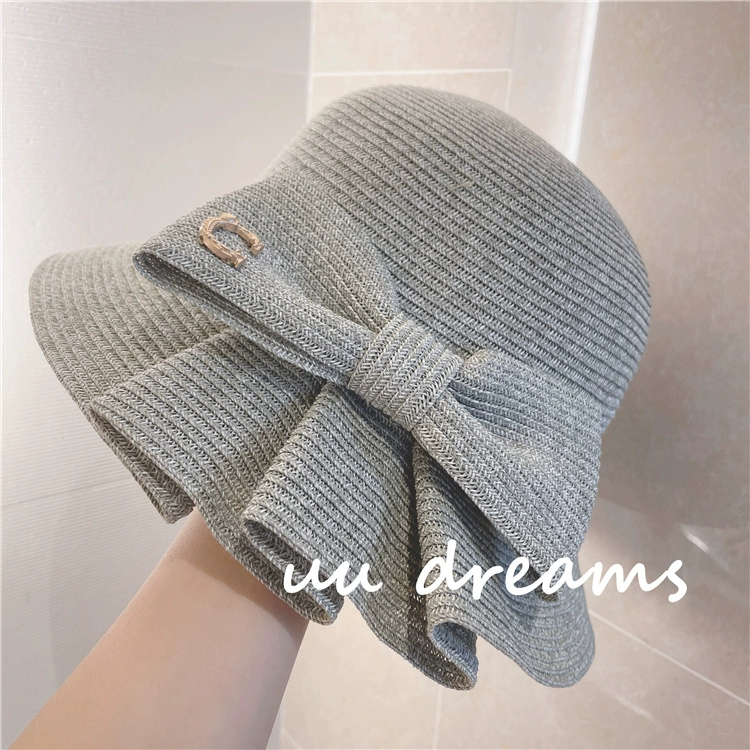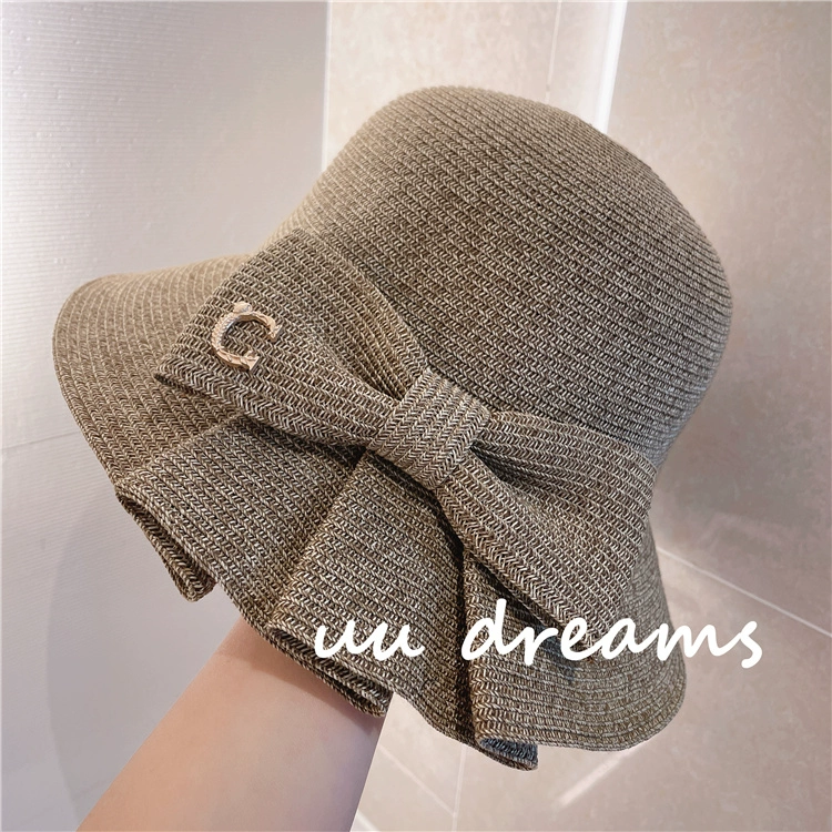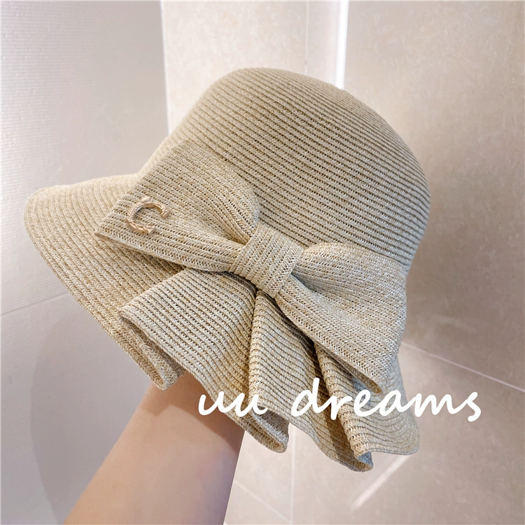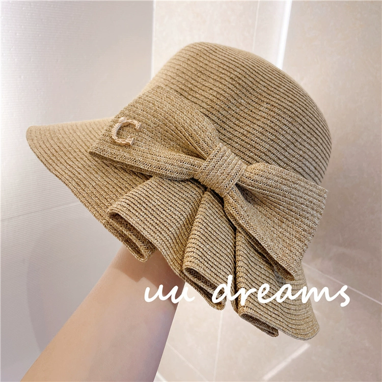 Japanese expensive pai yuan 2024 spring and summer sun hat, chic pleated bow papyrus sun protection fisherman straw hat for women