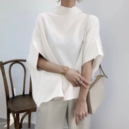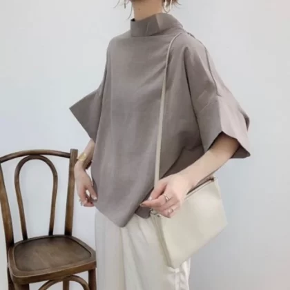 | nameOriginal | Japanese foreign trade women's shirt 2022 summer new shirt solid color pullover temperament commuter bat sleeve shirt top |