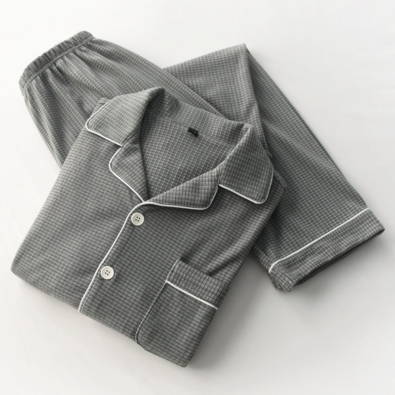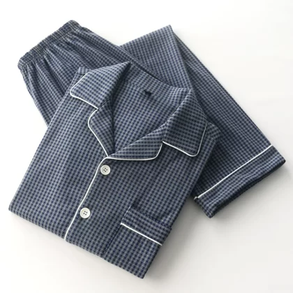 Japanese houndstooth men's German velvet thickened warm pajamas