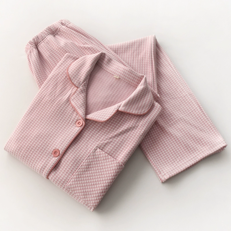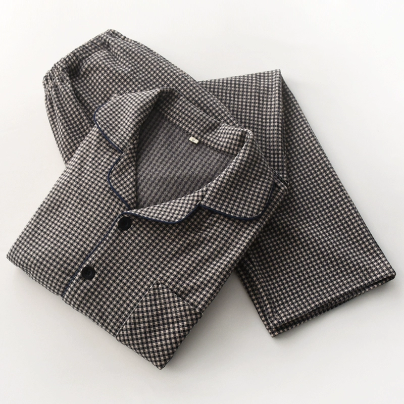 Japanese houndstooth pajamas for men and women in autumn and winter German velvet thickened warm plus velvet long-sleeved couple home wear set