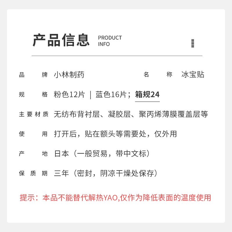 | nameOriginal | Japanese imported Xiaolin baby cooling stickers children's ice cream stickers anti-fever cooling stickers over 0 years old 2 years old + |