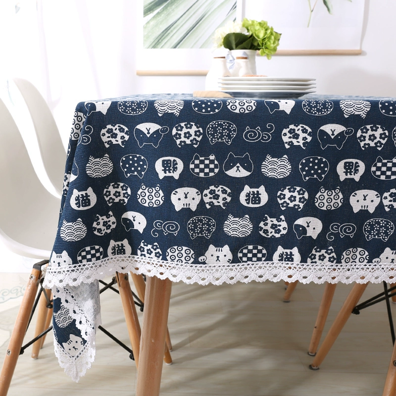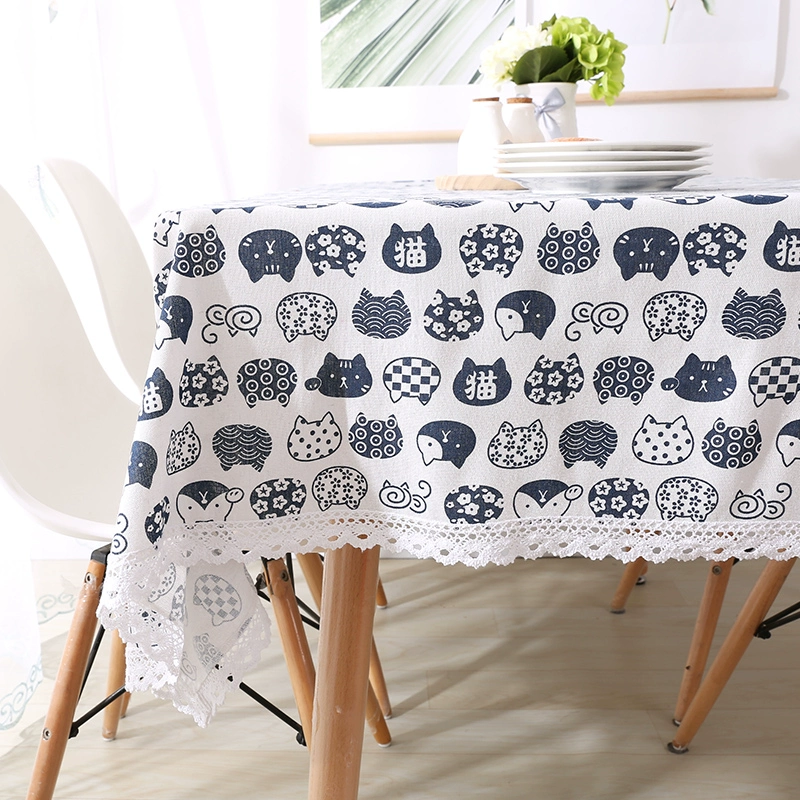 Japanese ins small fresh cat tablecloth desk cotton and linen dining table coffee table mat cover tablecloth kindergarten student dormitory