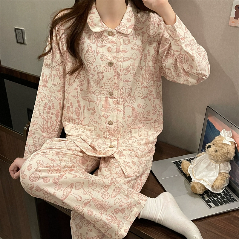 | nameOriginal | Japanese ins style strawberry bear pajamas girls spring and autumn long-sleeved student cartoon cute cardigan home wear set |