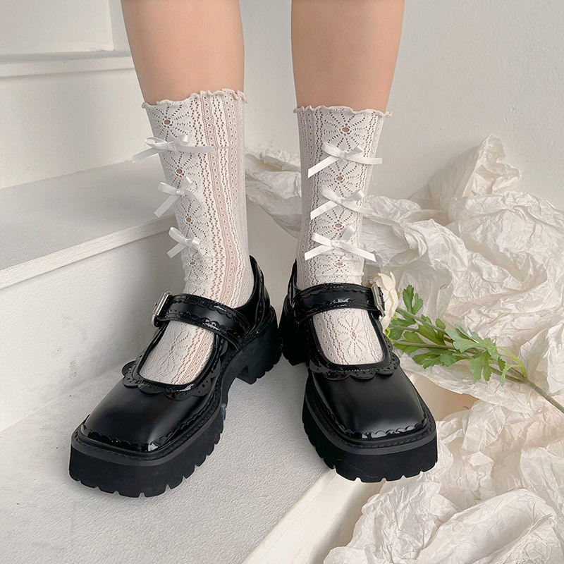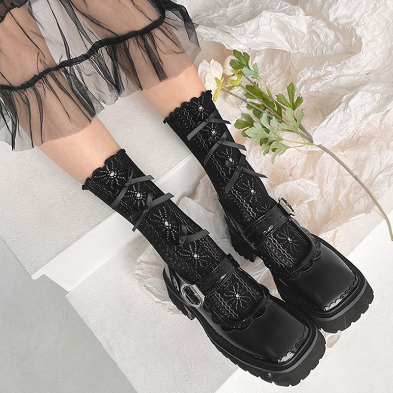 | nameOriginal | Japanese JK sweet white calf socks women's spring and summer thin lace short mid-calf socks bow milk white pile socks |