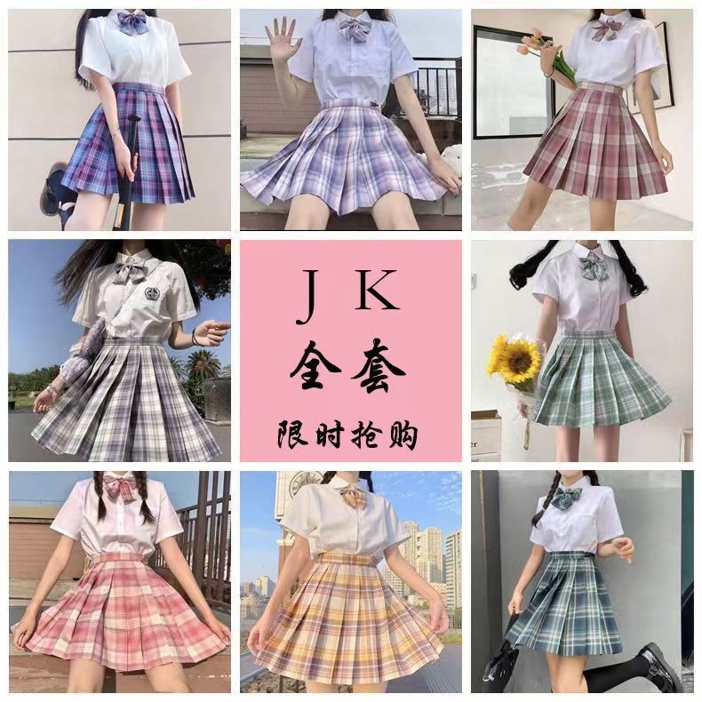 Japanese JK uniform suit spring and summer new shirt pleated skirt plaid skirt women's skirt student performance school uniform class uniform