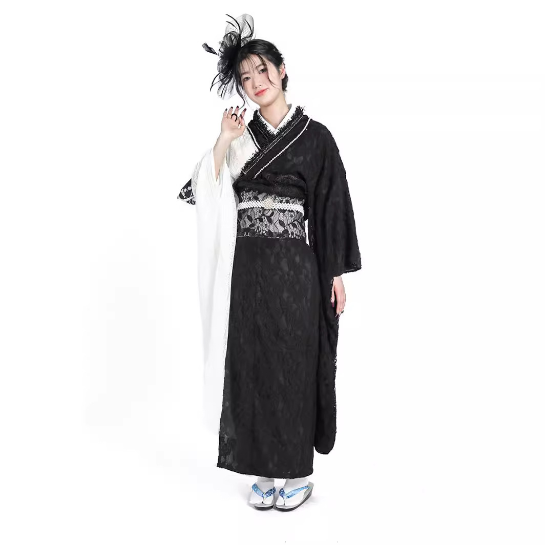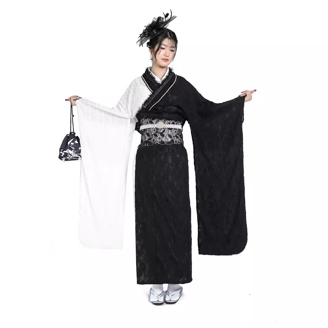 | nameOriginal | Japanese Kimono Women's Lace Hanging Black and White Contrast Sleeve Improved Dazhen Graduation Season Kimono Dress and Formal Dress |