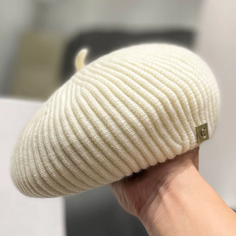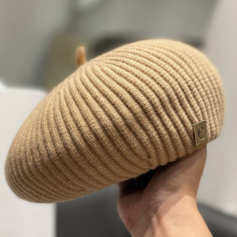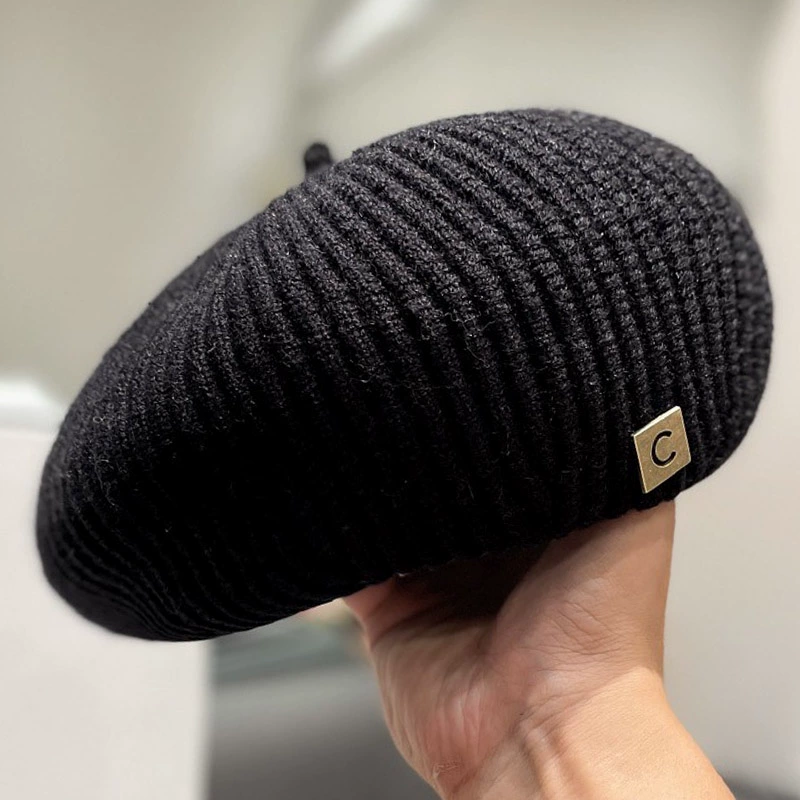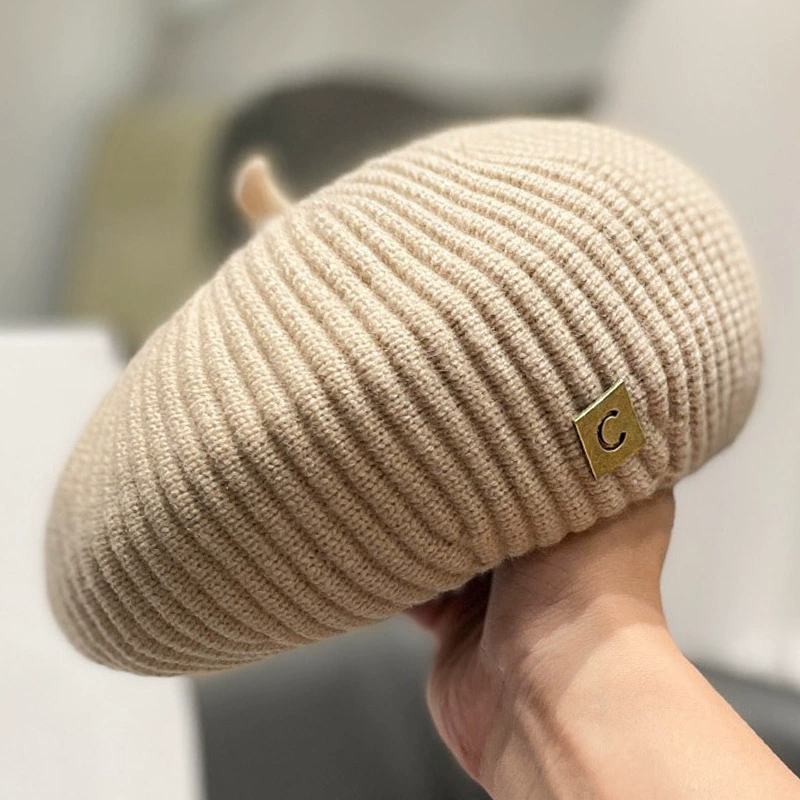 | nameOriginal | Japanese knitted solid color letter logo beret hat for women in autumn and winter Korean style Internet celebrity face little Beilei painter hat trend |