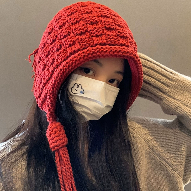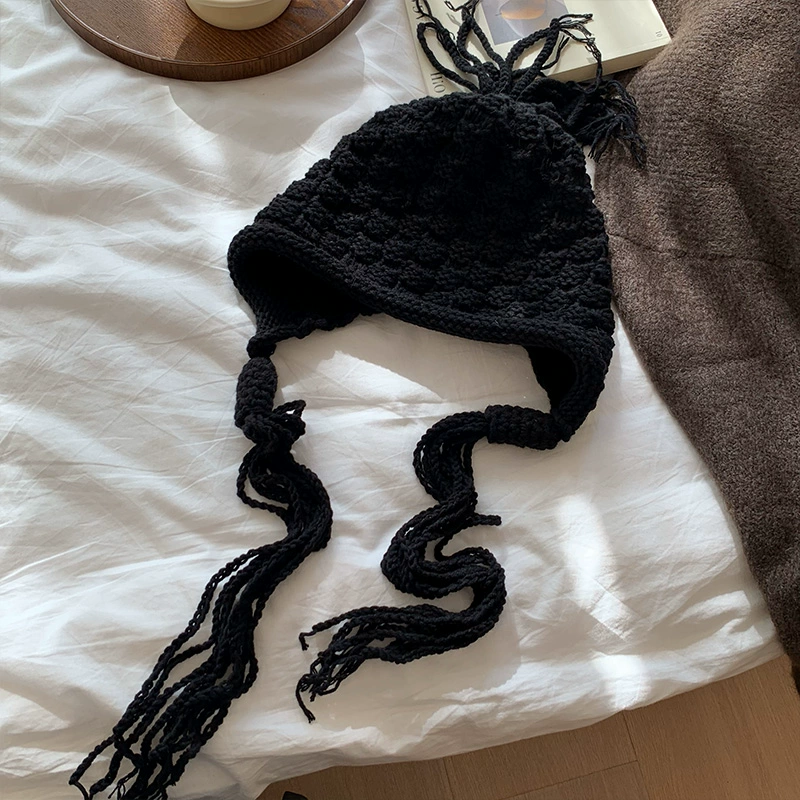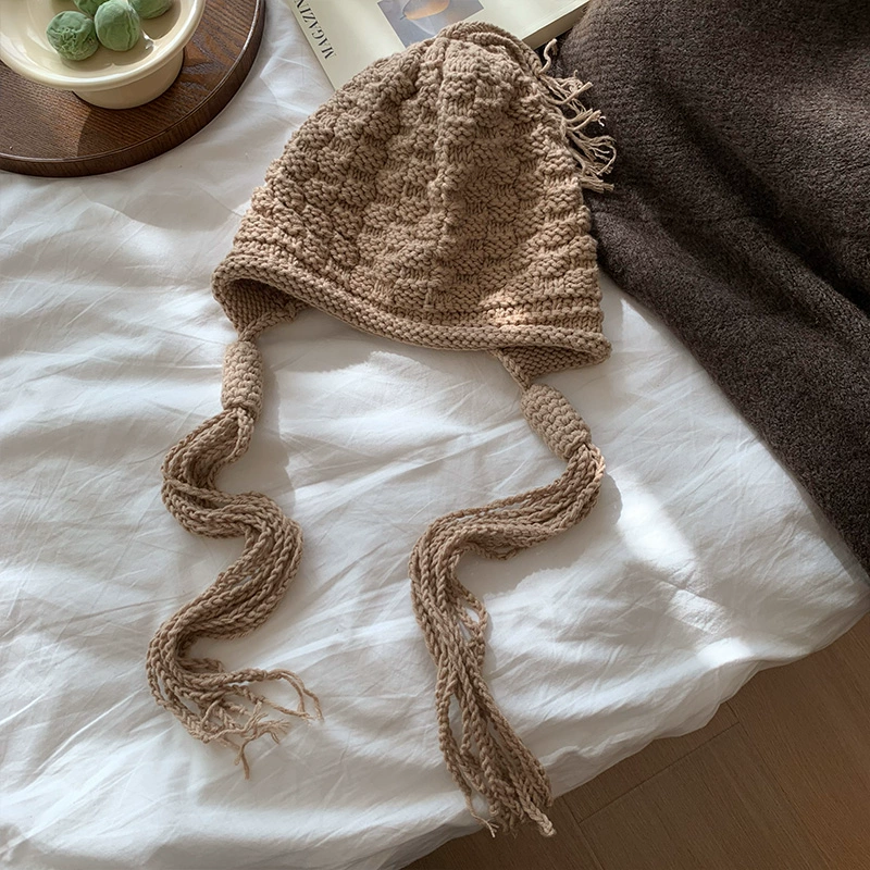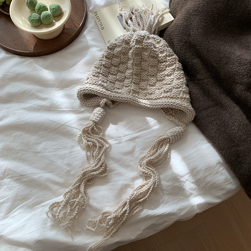 | nameOriginal | Japanese knitted thick wool hat for women in autumn and winter, versatile solid color warm Baotou long tie handmade knitted hat |
